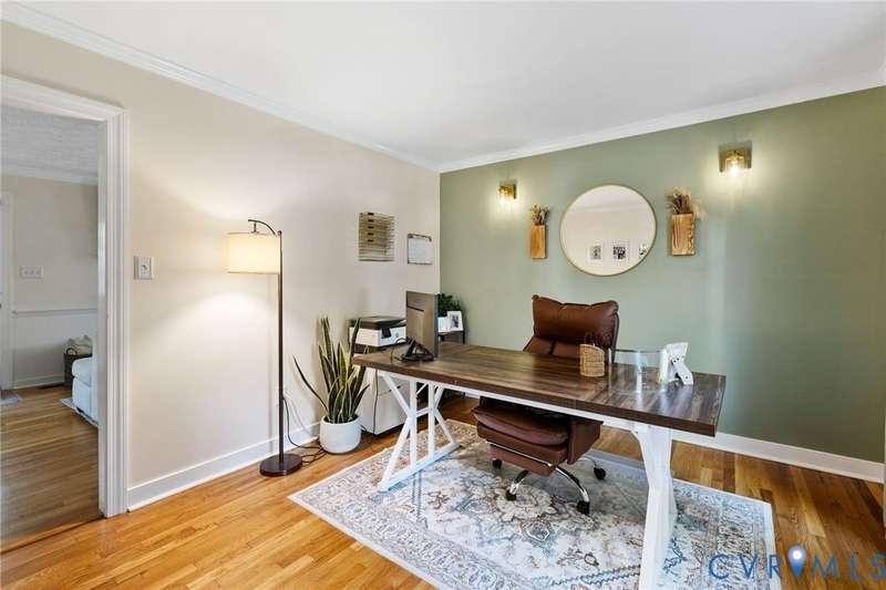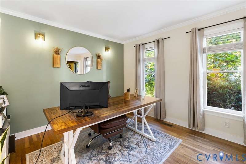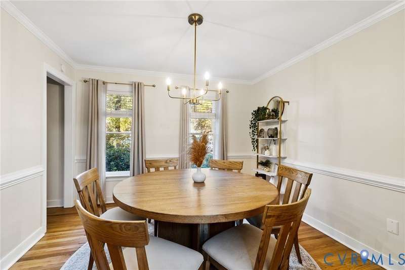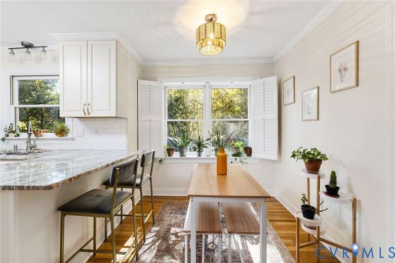 Welcome Home to Woodlake! This beautiful two-story transitional residence offers 3 bedrooms, 2.5 baths, and 1,856 sq. ft. of elegant living space, perfectly blending charm and functionality. The curb appeal delights with a darling brick front stoop and manicured landscaping that invite you right in. Step inside to find hardwood floors and custom moldings throughout the main level. The formal dining room features crown molding and hardwood flooring, perfect for hosting gatherings. The expansive family room offers a cozy wood-burning fireplace and access to the outdoor deck. The kitchen is a true showpiece, featuring a breakfast nook, granite countertops, bar seating, stainless steel appliances, and a coffee nook. Just around the corner, enjoy a formal living room or home office with crown molding and chair rail detailing, along with a stylish powder room boasting a granite vanity. Upstairs, retreat to the fabulous primary suite complete with a walk-in closet and private en suite bath featuring a dual granite-topped vanity and tub/shower. Two additional spacious bedrooms with carpet, oversized closets, and share a full hall bath with granite finishes. The walk-up attic provides excellent storage space. Outdoor living shines with a wood deck overlooking the fenced backyard, perfect for relaxing or entertaining. Recent updates include fresh interior paint and new light fixtures throughout. Located in the sought-after Woodlake community, this home combines comfort, charm, and convenience in a premier neighborhood setting.