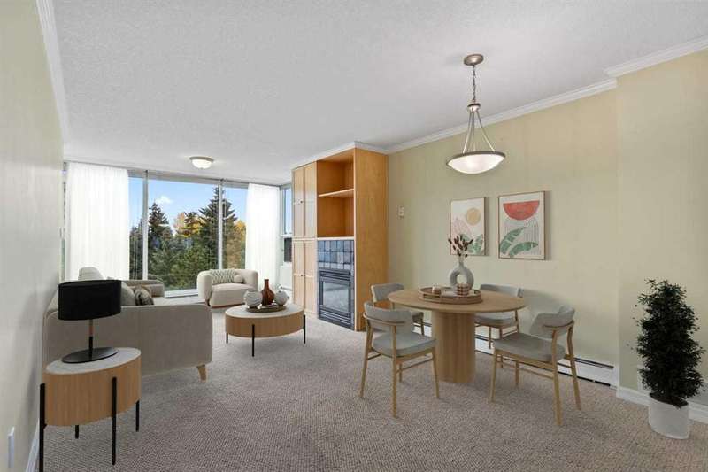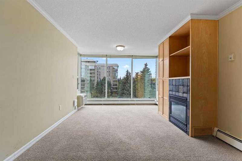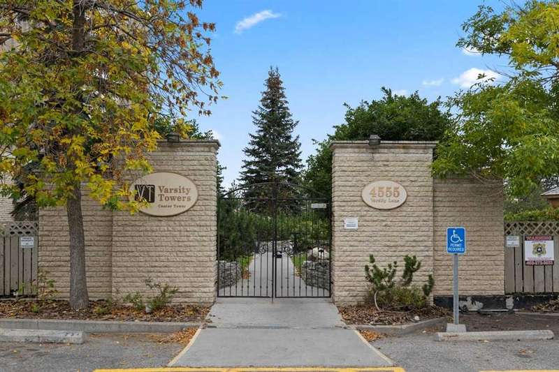 Gaze at sweeping garden and city views from this bright southwest corner unit with extra windows that flood the space with natural light, featuring a spacious layout with two large bedrooms, in-suite laundry, maple cabinets, built-in bookshelves, granite counters, tile backsplash, and modern décor, while a cozy gas fireplace creates the perfect focal point for relaxation and entertaining; included is secure underground parking and residents of Varsity Towers enjoy an unmatched lifestyle with access to an indoor pool, hot tub, steam room, fully equipped fitness centre, party lounge with games and big screen, business centre, library, car wash bay, lush landscaped gardens with BBQ areas, rooftop patios, courtyards, putting green, and greenhouse, all overseen by an on-site building manager providing peace of mind and exceptional service, plus a prime location close to schools, shopping, and dining makes this home the ultimate in urban convenience, and with flooring and paint updates needed it is priced perfectly for you to customize and make it your own. This complex is Pet Friendly and Bicycle storage also available. Condo fee not only covers all the features mentioned above, it also includes ELECTRICTY, WATER & HEAT common area maintenance and much more. Varsity Towers is located near Market Mall, U of C, Foothills Hospital, the Children's Hospital, and the New University District, with shops, restaurants, and major roadways nearby. This is a great condo, in a very nice complex, in a desirable part of the city.