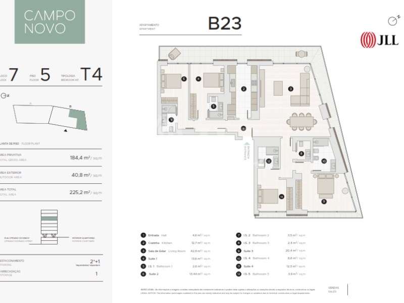 Apartamento T4, novo, com 186 m2 de área bruta privativa, 3 lugares de estacionamento e varanda, no condomínio Campo Novo, no Campo Grande, Lisboa. Todos os apartamentos têm áreas amplas, muita iluminação natural, varandas, estacionamento e arrumos. . Com acabamentos elegantes, os apartamentos oferecem todo o conforto. Mais do que um conjunto de edifícios, o Campo Novo surge como um ecossistema sustentável muito próprio, com parque infantil, lojas, cafés, restaurantes e escritórios. Destaca-se pela proposta de luxo em todos os detalhes: piscina interior aquecida, rooftop, estacionamento com carregamento de viaturas elétricas e um ginásio. Para complementar a oferta que o Campo Novo vai garantir, a sua localização conta com uma vasta oferta de comércio, pois o Campo Novo encontra-se numa das zonas mais centrais da grande Lisboa, a 10 minutos da Cidade Universitária e do centro hípico, está a um passeio de diversas escolas, clínicas de saúde e do famoso jardim do Campo Grande. Beneficia ainda de ótimos acessos rodoviários estando próximo da Segunda Circular e de uma vasta rede de transportes, destacando a estação de metro, linha verde e amarela. O Campo Novo vem para rejuvenescer a cidade alfacinha com um estilo de vida sustentável e elegante. Categoria Energética: A #ref:74202