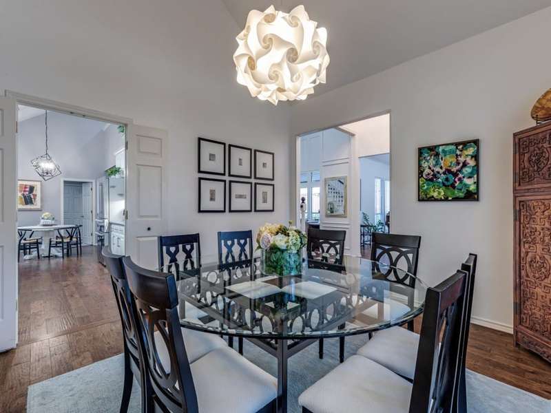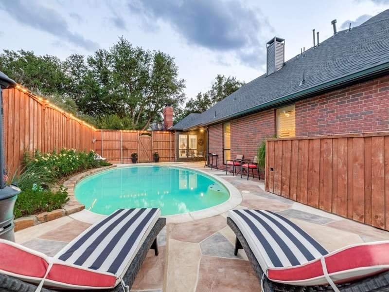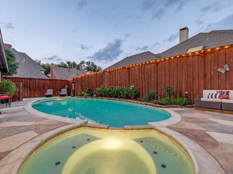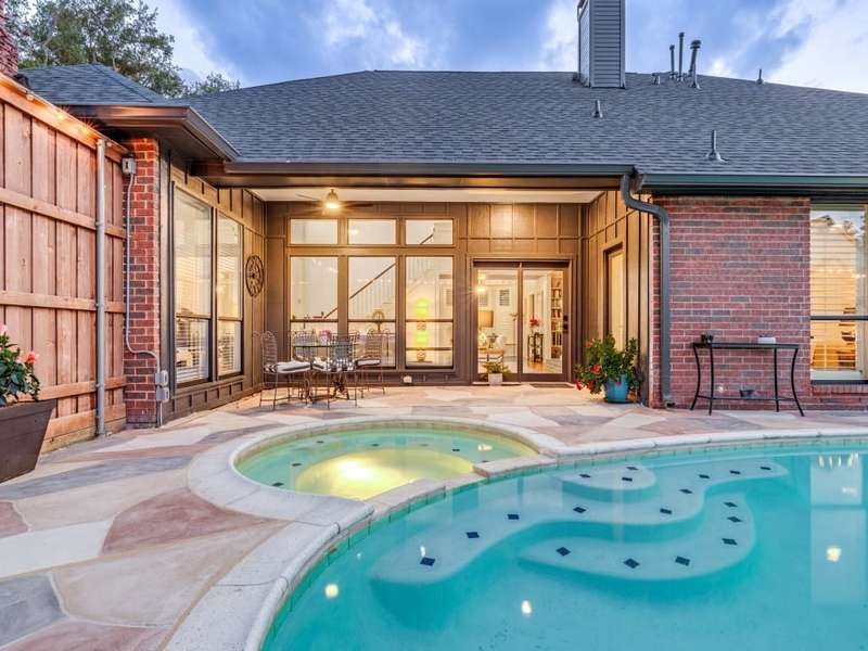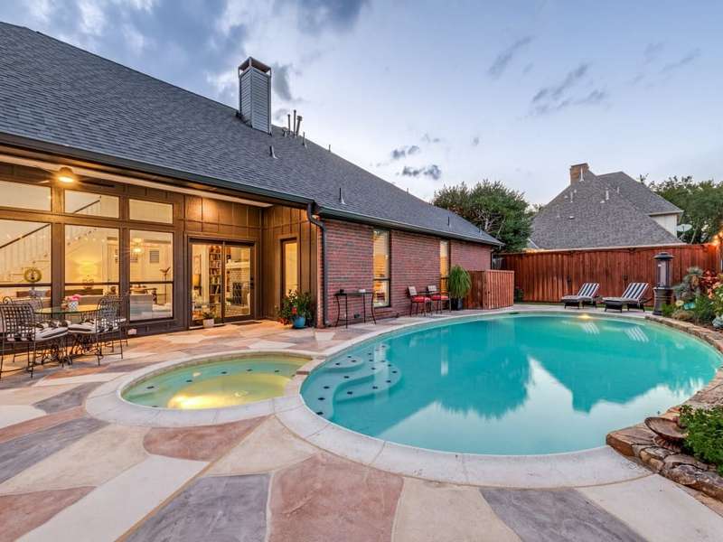 If the rarity of things impart their value, this home is priceless. A custom one of a kind haven! Great drive up appeal, but it does not prepare you for what is inside. Soaring cathedral ceilings, views of the pool and spa, and large, inviting rooms everywhere. Living room or study with fireplace and formal dining room off of grand entry. Family room with a second fireplace has more views of the pool and a library niche with a full wall of built-ins, welcome you to a private primary suite that you will never want to leave! Engineered wood floors throughout the home just connect and continue the beauty of this home. Gourmet kitchen with gas stove top, stainless steel appliances, and breakfast room with window seat. Upstairs you have two large bedrooms and an a spacious bathroom, the fourth bedroom was made into a TV room or study and is easy to convert back. Note the unique European fans, so many special touches in this home, including tons of recessed lighting, shutters. New roof, pool deck, and windows front of home and family room, June 2025. Backyard privacy provided by the 8ft Cedar, board on board fence. 16x4 Tuff Shed in backyard for your yard tools and or pool toys. This is one of the rare homes that you will want for your forever home.Gorgeous neighborhood with clubhouse, 24hrs security. Exemplary schools, a few minutes to Legacy West, Toyota, FritoLay HQs, Business Park, tons of restaurants, and shopping around the area. Easy access to freeways.