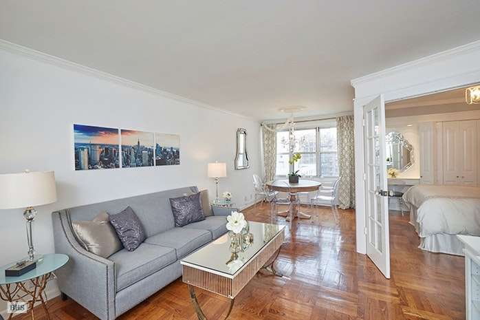Direct morning sun and pin drop quiet this beautifully converted alcove studio seamlessly incorporates a lovely sleeping alcove with a queen size bed. A large marble breakfast bar with bar seats separates the full kitchen with stainless steel appliances from the main 21 foot living space. The apartment has non-stop views east, offers a wealth of closets and storage, a built in desk in the sleeping alcove, extravagant lighting fixtures, lovely ceiling molding, parquet oak wood floors and the apartment is in excellent condition. The full bath has been renovated. Gramercy Park Towers built in 1965 is a full service cooperative located between 18th and 19th Streets on Third Avenue. The cooperative offers a 24 hour laundry room, exercise room, lovely roof deck with amazing views and a parking garage on 19th Street with access to the building.There is a grocery market on 20th Street and Third Avenue and a Trader Joe's on 14th Street and Third Avenue. Capital assessment of $218.56 expires.1/31/19. Dogs not permitted.