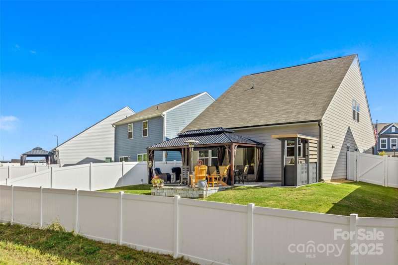 This beautifully maintained home offers the perfect blend of modern features, open living spaces, and an outdoor retreat designed for everyday enjoyment and effortless entertaining. From the moment you arrive, you'll notice the care and attention to detail that makes this property truly special. Step inside to find bright, inviting living areas that flow seamlessly from the family room to the kitchen and dining spaces. The kitchen is the heart of the home, perfect for cooking, gathering, and connecting, while the rest of the home offers comfort, style, and functionality at every turn. The backyard is where this home truly shines! Designed with entertaining and relaxation in mind, the owners have created a private oasis featuring: A 6-ft vinyl privacy fence and stone landscaping for beauty and low maintenance. A full irrigation system to keep everything lush year-round. A 12x30 patio with an additional 10x10 paver extension for plenty of space to host family and friends. An impressive outdoor kitchen complete with a built-in grill, refrigerator, and SS countertop ready for your next cookout. And a 20x12 hardtop gazebo with dual ceiling fans and built-in lighting, creating the perfect shaded lounge area for summer evenings or quiet morning coffee Whether you're grilling out, hosting game nights under the gazebo, or just unwinding with your favorite book in the fresh air - this backyard feels like your own private resort. Living in Wilkerson Place means enjoying the best of both worlds - a peaceful, private setting in a welcoming community, with easy access to Lake Wylie, local shopping, and dining.