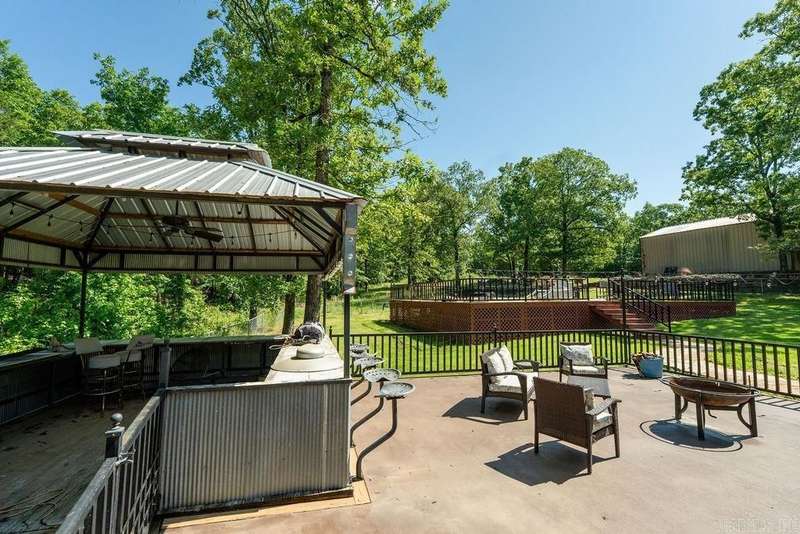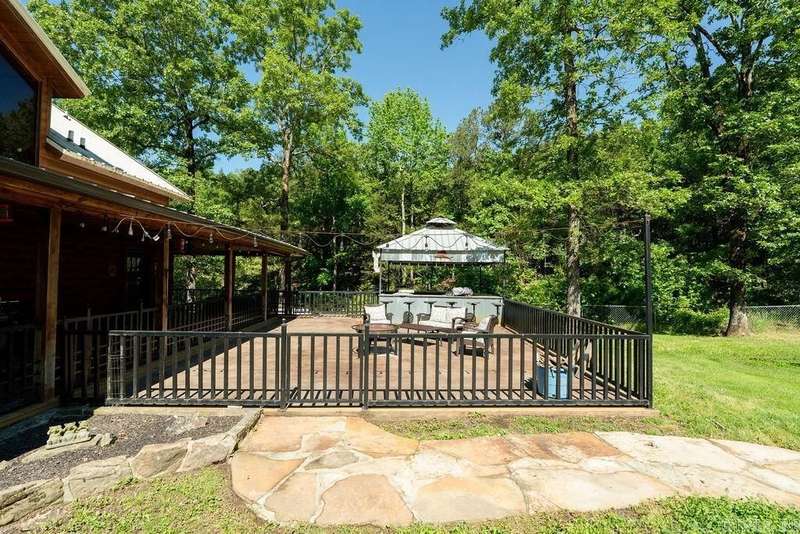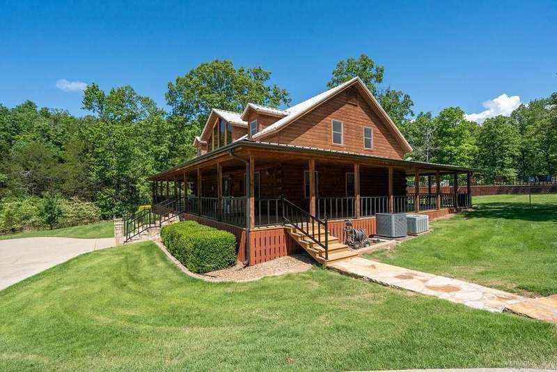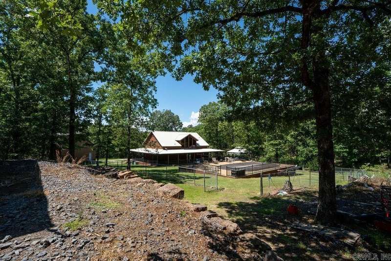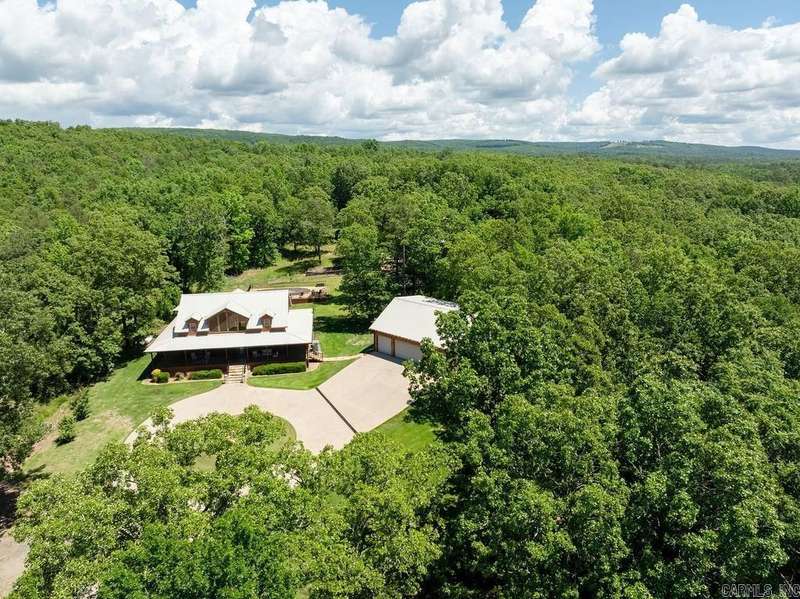 Escape to your own retreat on 5 acres just outside of town! This stunning log cabin features a paved driveway, a wet weather creek, an above-ground pool, and a fenced yard for peaceful days by the water. Unwind on the wrap-around porch or fire up the grill in the cozy covered grilling nook. A 4-car detached garage with partially finished living space above adds even more charm. The 30x40 shop with soaring 14' ceilings is heated/cooled and perfect for all your hobbies. Inside, enjoy 3 spacious bedrooms with walk-in closets, updated bathrooms, and a beautifully refreshed kitchen. A separate drive leads to the shop with plenty of space for all your projects. Just 2 miles from Cow Shoals for world-class fly fishing and 6 minutes to downtown Heber Springs!