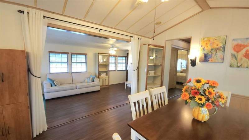 CHEERFUL HOME IN ACTIVE 55+ COMMUNITY! This one bed, two bath home is located in Sugar Creek Country Club. This community has LOW HOA FEES OF $525 each QUARTER which include internet, cable, grass mowing, water, sewer and trash. There are 2 swimming pools, heated spa, clubhouse, tennis, pickleball, shuffleboard, a fitness room, and workshop. There is an active social calendar during the winter months. The furnished home features a spacious kitchen with island, large dining area, front porch with composite decking, metal roof, and a storage shed with full size laundry. Enjoy this community's proximity to the River Links Golf Course and the Braden River. SO MUCH TO OFFER! Sorry this is not a dog lot.