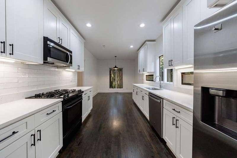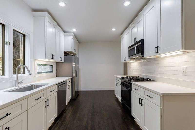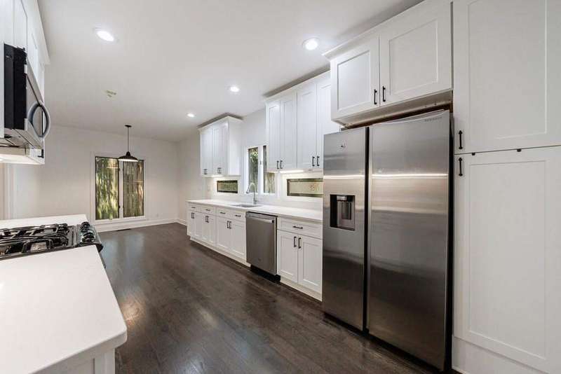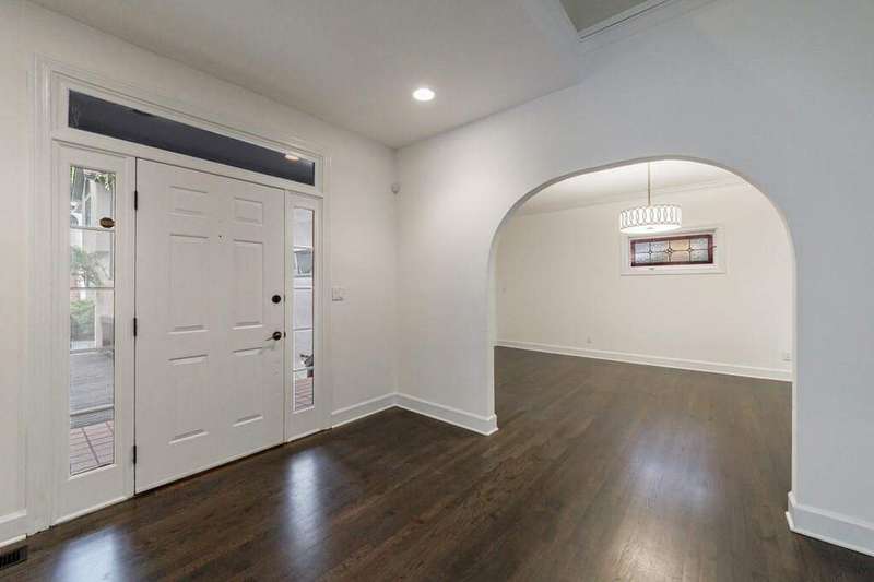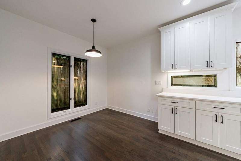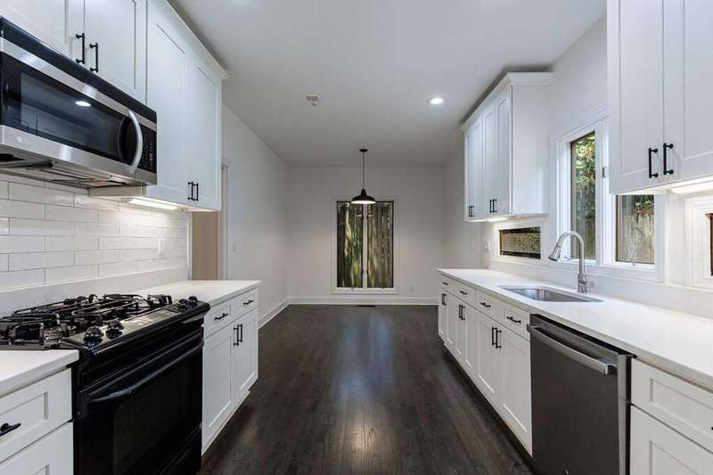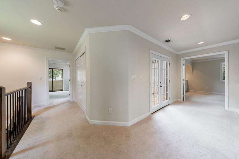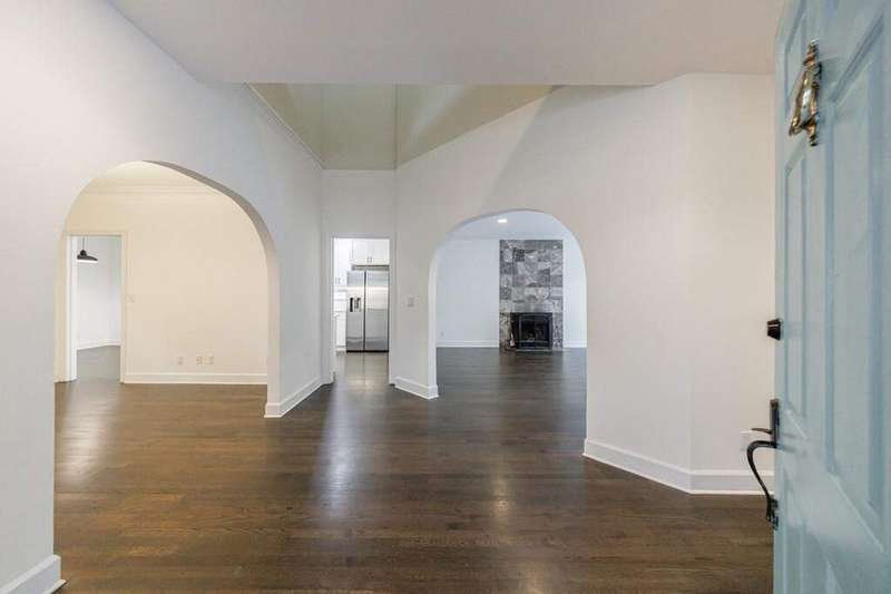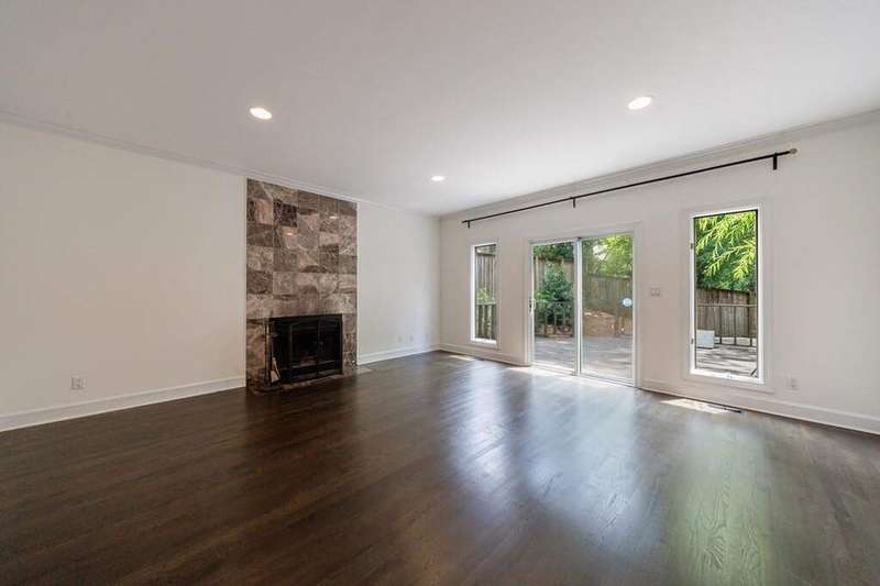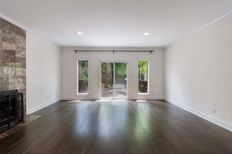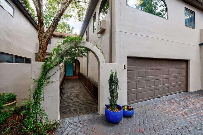 Buckhead's true hidden gem is this 2 bedroom townhome in the Case Bella neighborhood. Unit E has just been freshly painted, the kitchen and full baths have been renovated, its move-in ready! Entrance foyer leads to living room with fireplace and access to the porch. Formal dining room sits in the front of the unit. Kitchen has stone countertops, white cabinetry as well as an breakfast area. Spacious laundry room off of the 2 car garage, as well as powder room. Upper level staircase leads to two bedrooms both with en-suite baths. The secondary bedroom sits in the front of the unit and has an sunroom. The primary suite has a vaulted ceiling, walk-in closet and spacious primary bath with dual vanities, separate shower and garden tub. The upper level also offers a bonus space with wet bar and fireplace. Great for another living space! This unit has a great use of space, living areas are spacious and two separate outdoor spaces. Truly a must see in Buckhead! This quiet community has a total of six townhomes.