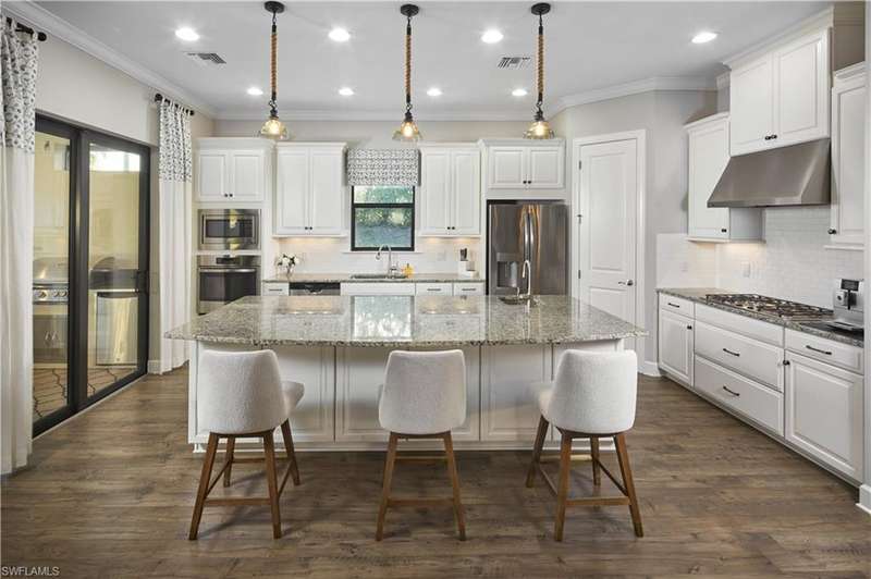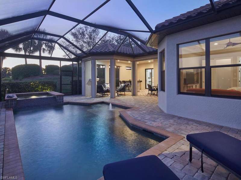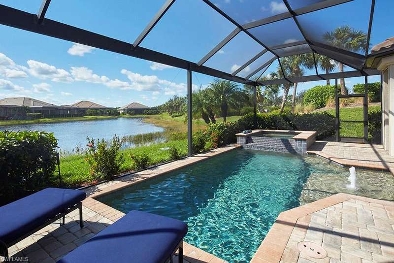 GOLF MEMBERSHIP INCLUDED!!! Available until December 26, 2025. Rented from December 28, 2025 to March 31, 2026. Enjoy resort living in Esplanade, a prestigious golf community in Naples. Full gulf membership transferred to tenant for $600. This beautifully 3 bedroom, 3 bath pool home has upgraded kitchen with gas range, outdoor summer kitchen with built-in gas grill, heated pool, and Jacuzzi, large pool deck with lake view, this property offers a true Florida getaway. Esplanade is a resort style golf community, including an 18 hole private golf course, pool complete with cabanas and outdoor bar, 6 tennis courts, 4 bocce ball courts, 4 Pickleball courts, gym, with aerobics room, gated dog park, and so much more!