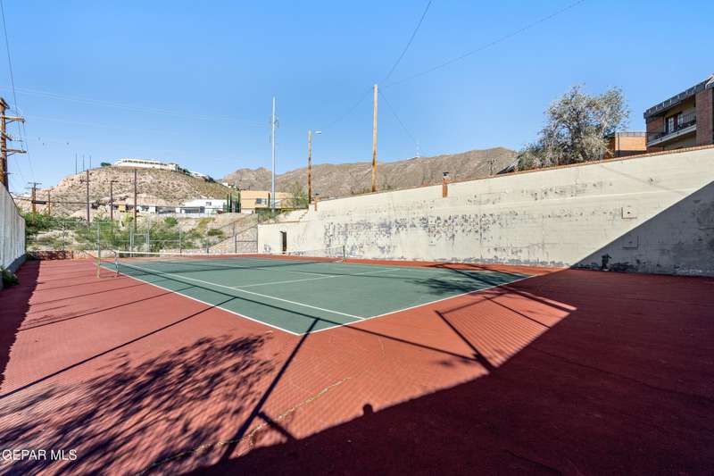 This beautifully updated condo in the desirable Stanton Condominiums offers modern comfort and stunning views of the city and mountains. The light-filled great room creates a welcoming atmosphere, while the updated kitchen features bright cabinetry, granite countertops, and stainless steel appliances. Ample closet space and refrigerated air ensure year-round comfort. Ideally located near UTEP, Mesa Street venues, shopping, dining, and entertainment; this home provides both convenience and quiet living with amazing mountain views and a large balcony. The community offers swimming pool conditioned for physical training as well, a fitness center, tennis court, clubhouse, grill areas and gated entry. You get 2 assigned parking spaces and super convenient elevator included. HOA covers gas, water, trash, roof, and exterior maintenance for convenient, low-maintenance living. You only pay electricity. HOA pays for pool and amenities maintenance, condo water and gas.