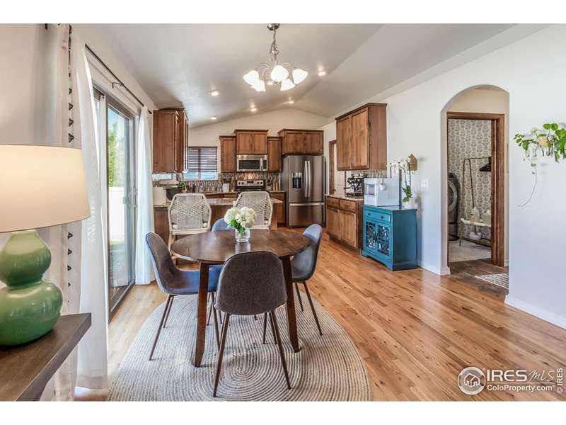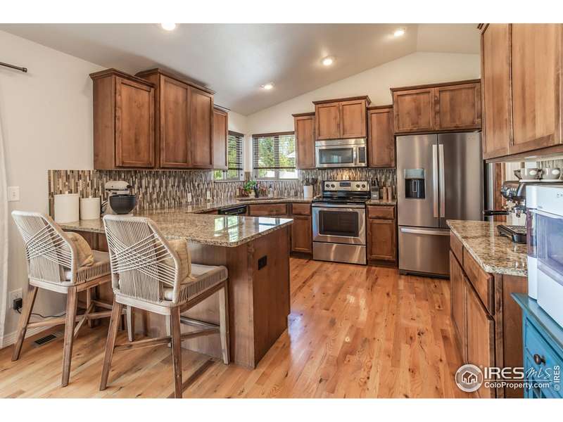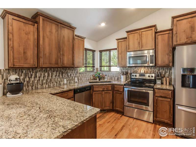 Welcome to this beautifully designed ranch-style home offering comfort, convenience, and thoughtful details throughout. A covered front porch invites you inside to a bright, open floor plan with vaulted ceilings in the living room and kitchen. A cozy gas fireplace serves as the heart of the home, creating a warm and inviting gathering space. The kitchen features stylish cityscape cabinets, stainless steel appliances, and granite countertops-perfect for both daily cooking and entertaining. Just off the garage, a convenient drop zone keeps things organized, and the included washer and dryer make move-in simple. The spacious primary suite is highlighted by vaulted ceilings, dual vanities in a spa-like five-piece bath, and a generous walk-in closet. The finished basement extends your living space with two additional bedrooms, a full bathroom, a large rec room, and ample storage. Outside, the fully fenced backyard and expanded patio provide the perfect setting for barbecues, outdoor gatherings, or simply enjoying a quiet evening at home. New exterior paint 2024 and New Furnace and A/C installed in 2023.