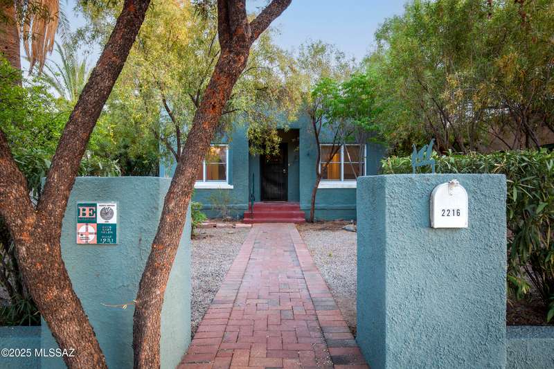 A Jewel awaits in the historic Blenman Elm Neighborhood. This 2 br/1ba main house has wood floors, beautiful wood work , spacious/large lot, pull-in spot/parking off alleyway. 1br/1ba guest house has concrete flooring w/bathroom. Great natural light throughout incorporates the lush vegetation w/mature trees at main and guest house. Newer windows. Basketball court w/slab! A short distance to Banner UMC, UofA, restaurants, and streetcar.