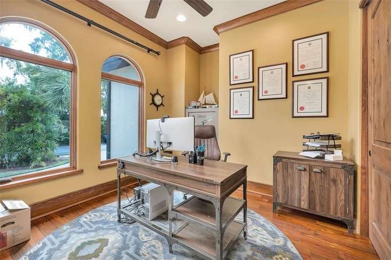 Come see this custom house located in the highly desirable Sea Island neighborhood community of Hamilton Landing. Built by respected local builder Mike Carroll for his personal residence, this home has all the custom features you need. It sits on 1/2 AC with pocket marsh views and no neighbors on one side. This house features 5 bedrooms, 4.5 bath with reclaimed hardwood floors from a tobacco barn in Vidalia, GA. Located on the main floor is the primary bedroom, two bedrooms with a shared bath, Laundry room, and the Office. Upstairs there are two additional bedrooms and 2.5 baths with a large game room/bonus room. In the back there are two screened-in porches one with gas fireplace, grill and mini fridge overlooking the heated pool & spa. The kitchen features travertine floors, DCS Fisher gas stove, two dishwashers, and icemaker and a newer stainless steel refrigerator with touchscreen feature. Hamilton Landing is easy off & on the Island location with a walking trail to Frederica Academy. In the back of the neighborhood there is a community park and dock for kayak & paddle board launch.