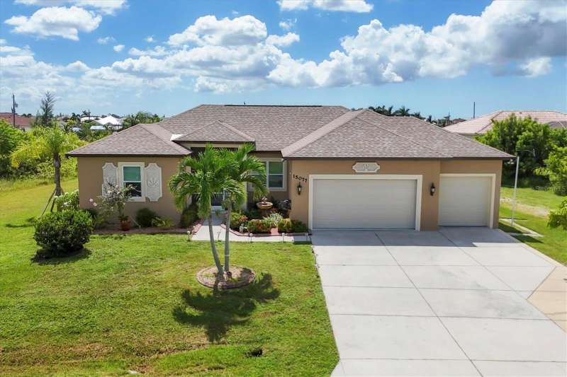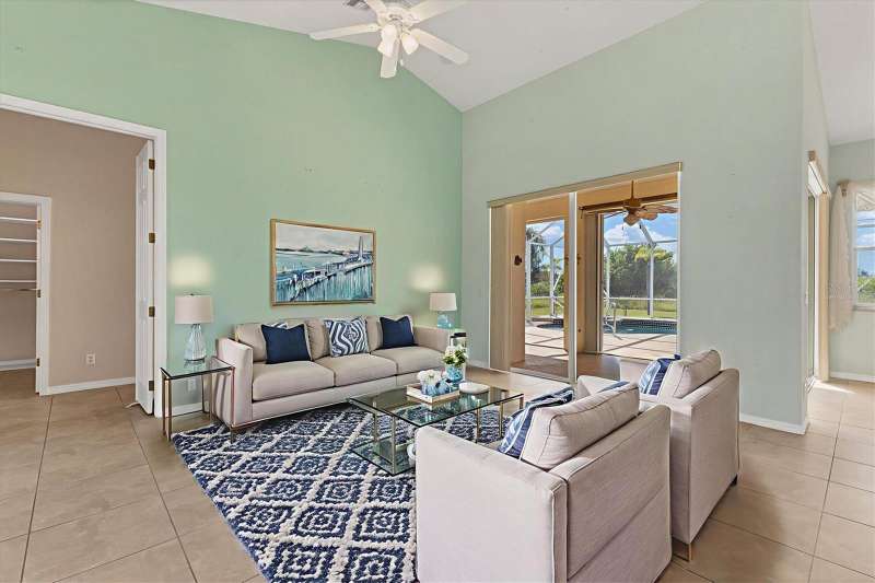 One or more photo(s) has been virtually staged. This stunning home in Southwest Florida’s vibrant, waterfront community of South Gulf Cove offers a perfect blend of comfort, and style. Featuring three spacious bedrooms and two modern bathrooms, the 2,044 square-foot residence is designed for both relaxation and entertaining. The heart of the home is the beautifully appointed kitchen, equipped with granite countertops, wood cabinetry, and tiled floors that extend throughout the living areas, complemented by freshly cleaned carpets for added comfort in two of the bedrooms. The bathrooms have been thoughtfully updated with new vanities and tiled showers, while the primary bathroom boasts dual sinks, a jetted tub, and a private water closet, creating a luxurious retreat. Outside, enjoy the heated SALTWATER POOL, ideal for year-round enjoyment. Pleasantly landscaped to enhance the home’s welcoming curb appeal. Practical upgrades include a newer roof, solar panels (assumable lease to new buyer), offering energy efficiency and peace of mind, updated bathrooms, most windows upgraded to hurricane impact and have shutters, 2022 new HVAC system, and the Lanai is fitted with accordion shutters. South Gulf Cove is a desirable waterfront community located just off the Myakka River, known for its scenic parks, sidewalks, and a community boat ramp perfect for the boating enthusiasts. Residents can choose to join the optional homeowner’s association, which helps maintain the neighborhood’s charm and amenities. This home combines modern convenience with the beauty of Southwest Florida’s coastal lifestyle, making it an exceptional opportunity for buyers seeking a move-in ready residence with ample living space to make growing memories. 15077 Acorn Circle is a MUST see. Call Today!