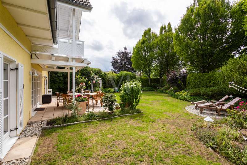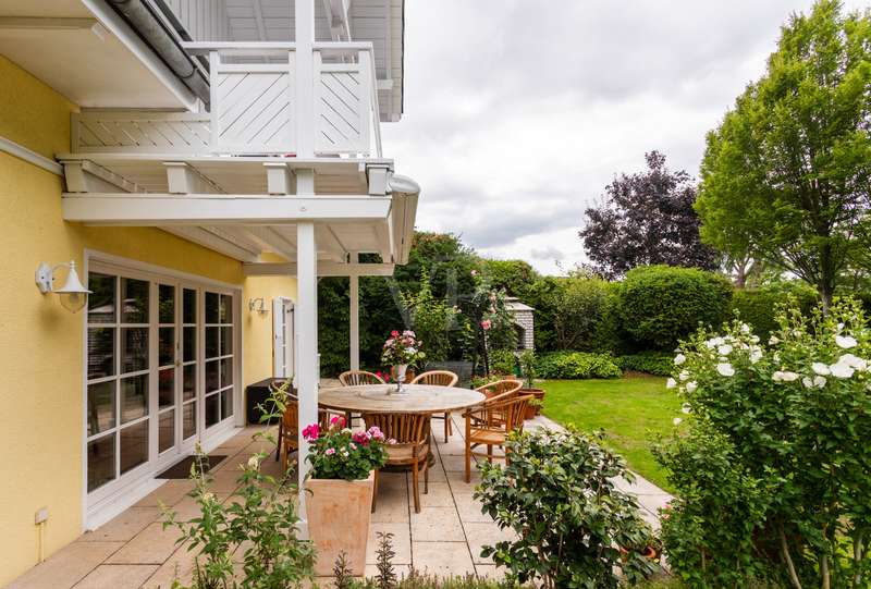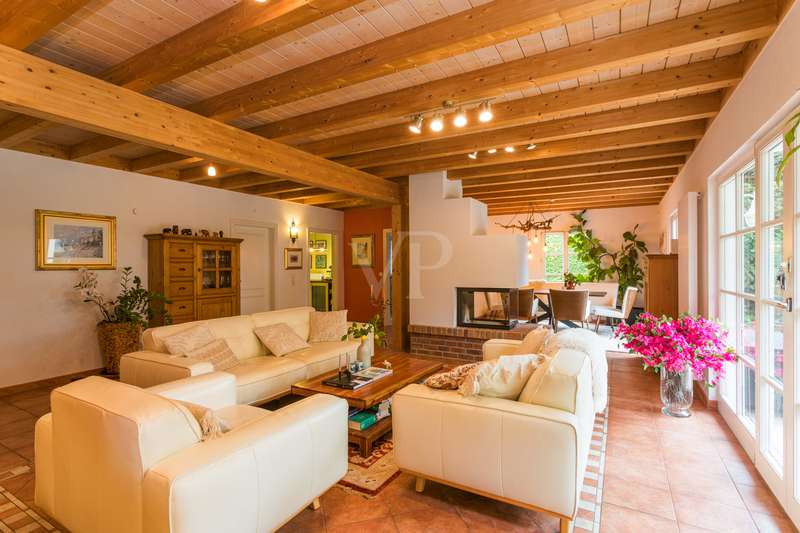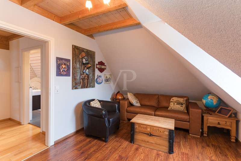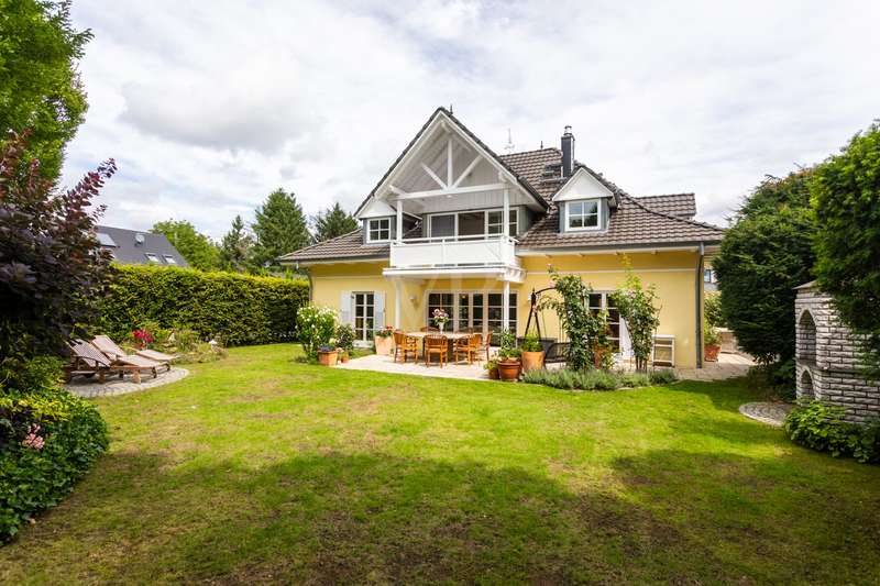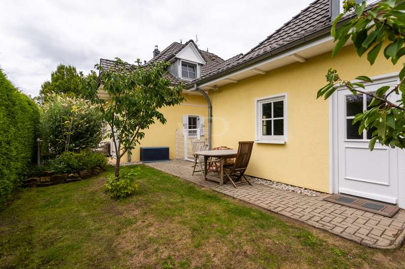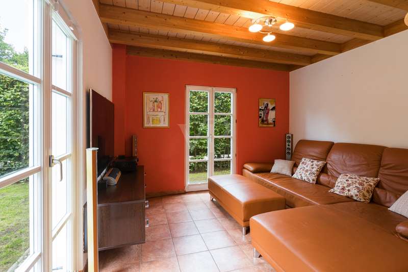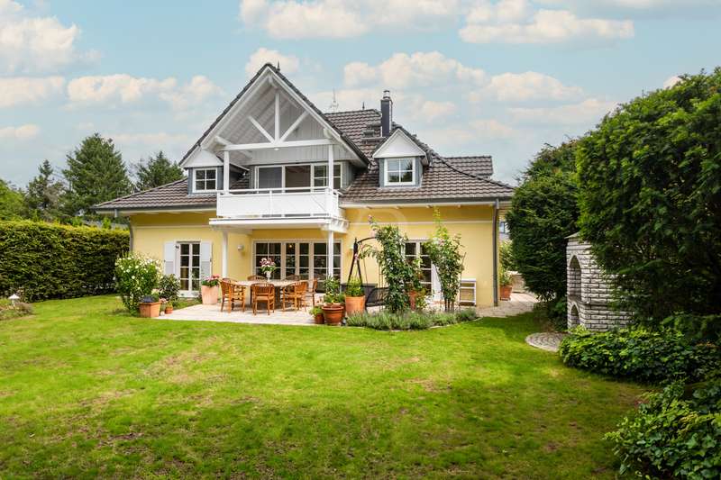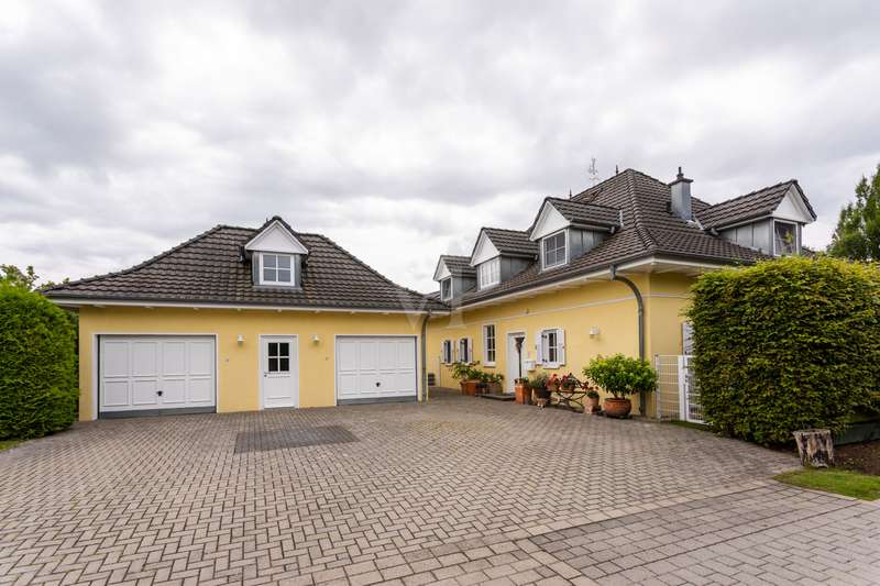 This well-kept detached house from 1995 boasts a spacious layout and a quiet residential area right next to Seddiner See golf club. With a living space of approx. 232.76 m² on a plot of approx. 895 m², the property offers a wide range of options for individual living concepts - ideal for families or couples who value living comfort and privacy. An inviting entrance area awaits you on the first floor, from where you enter the spacious, light-flooded living and dining area. Large windows and direct access to the terrace create a harmonious connection between the indoor and outdoor areas. An awning provides pleasant shade on the main terrace on sunny days. The kitchen is equipped with a fitted kitchen, offers plenty of space for culinary activities and also has access to one of the two terraces. There are a total of six well-proportioned rooms, including four bedrooms spread over two floors. Two bathrooms ensure comfort in everyday life and offer enough space for the whole family. The majority of the windows are fitted with blinds so that light and privacy can be customized. There is also a converted attic, which is currently used as a yoga room. The property also has a spacious balcony, which also covers the large main terrace, as well as a well-tended garden with a brick-built barbecue, perfect for socializing with family and friends. There are two garages for the vehicle fleet in the separate outbuilding, which also offers storage space for garden tools, bicycles and other utensils. Thanks to the well thought-out layout, there is enough space for every member of the family - even if you need more space. The location impresses with absolute tranquillity in the midst of natural surroundings. The proximity to the renowned Seddiner See golf club is a particular highlight for golf enthusiasts. At the same time, shopping facilities, schools and other everyday amenities are within easy reach. This detached house combines high-quality living with practical furnishings and an idyllic location and can be occupied at short notice. See for yourself during a viewing - we look forward to hearing from you.