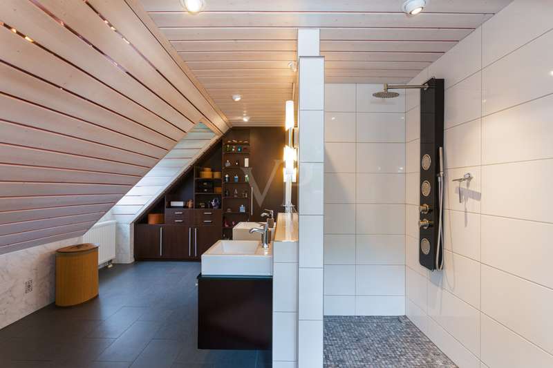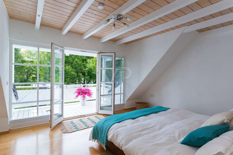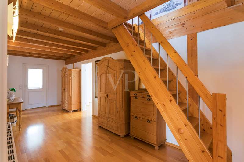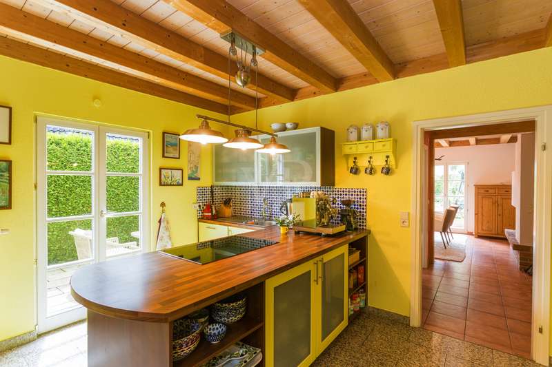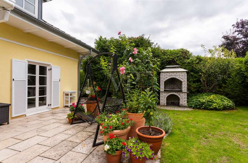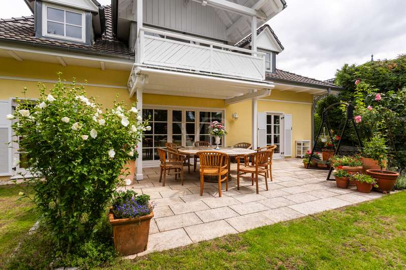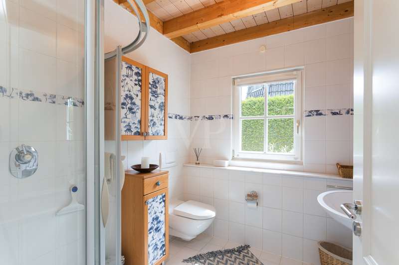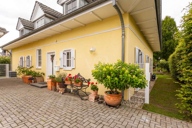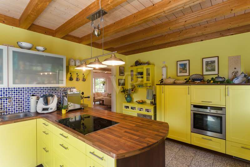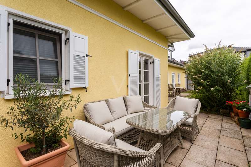 This well-kept detached house from 1995 boasts a spacious layout and a quiet residential area right next to Seddiner See golf club. With a living space of approx. 232.76 m² on a plot of approx. 895 m², the property offers a wide range of options for individual living concepts - ideal for families or couples who value living comfort and privacy. An inviting entrance area awaits you on the first floor, from where you enter the spacious, light-flooded living and dining area. Large windows and direct access to the terrace create a harmonious connection between the indoor and outdoor areas. An awning provides pleasant shade on the main terrace on sunny days. The kitchen is equipped with a fitted kitchen, offers plenty of space for culinary activities and also has access to one of the two terraces. There are a total of six well-proportioned rooms, including four bedrooms spread over two floors. Two bathrooms ensure comfort in everyday life and offer enough space for the whole family. The majority of the windows are fitted with blinds so that light and privacy can be customized. There is also a converted attic, which is currently used as a yoga room. The property also has a spacious balcony, which also covers the large main terrace, as well as a well-tended garden with a brick-built barbecue, perfect for socializing with family and friends. There are two garages for the vehicle fleet in the separate outbuilding, which also offers storage space for garden tools, bicycles and other utensils. Thanks to the well thought-out layout, there is enough space for every member of the family - even if you need more space. The location impresses with absolute tranquillity in the midst of natural surroundings. The proximity to the renowned Seddiner See golf club is a particular highlight for golf enthusiasts. At the same time, shopping facilities, schools and other everyday amenities are within easy reach. This detached house combines high-quality living with practical furnishings and an idyllic location and can be occupied at short notice. See for yourself during a viewing - we look forward to hearing from you.