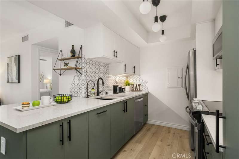 Welcome to Crescent Heights, where modern elegance meets vibrant city living. Perched in a prime location, this 2-bedroom, 2-bathroom condo boasts sweeping views of the scenic West Hollywood Hills--offering a daily backdrop of natural beauty and urban sophistication. Step inside to an open, light-filled layout appointed with luxury vinyl plank flooring and chic, contemporary design choices. The remodeled kitchen impresses with quartz countertops, custom cabinetry, and designer fixtures--perfectly suited for both everyday living and effortless entertaining. The spacious living and dining areas flow seamlessly onto a private balcony, an ideal spot to sip morning coffee or toast the sunset against a hillside silhouette. Throughout the home, thoughtfully selected finishes and stylish decor create a cohesive sense of calm and modern refinement. Each bedroom serves as a peaceful retreat, complete with generous closet space and en-suite or adjacent bathrooms. The bathrooms mirror the home's contemporary design with clean lines and updated fixtures, blending form and function with ease. Enjoy 2 assigned (non-tandem) parking spaces for maximum convenience. Additional highlights include access to premium community amenities: a sparkling pool, fitness center, and 24/7 security cameras. With Sunset Boulevard and Melrose Avenue just steps away, you'll enjoy unmatched walkability to world-class shopping, dining, and nightlife. Whether entertaining in style or enjoying a quiet evening at home, this is luxury L.A. living at its finest.