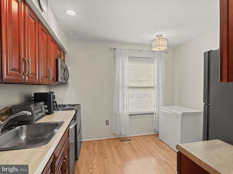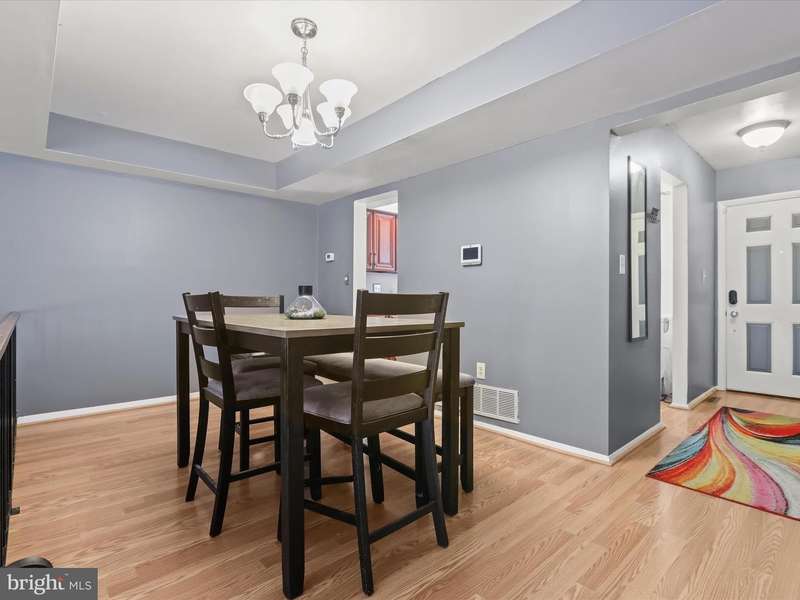 Welcome to the Seven Courts community of Parkville! This charming Tudor-style brick and stucco townhouse offers an inviting open floor plan designed for both comfort and entertaining. The spacious living room features luxury laminate floors, soaring ceilings, and access to the deck, creating a seamless flow for indoor and outdoor living. An elevated formal dining room connects effortlessly to the kitchen, perfect for hosting gatherings. The updated kitchen showcases modern counters, a stone backsplash, 36""Â? soft-close cabinetry, and stainless steel appliances, making it as functional as it is stylish. Upstairs, the primary suite provides a private retreat with a walk-in closet and an en-suite bath boasting a ceramic tile walk-in shower. Two additional bedrooms and a full hall bath complete the upper level. The fully finished lower level offers versatility with a cozy wood-burning fireplace with brick surround, plenty of storage, laundry, and walk-out access to the fenced yard, patio, and storage shed. Ideally located near major commuter routes, including US-1, I-95, and I-695, this home combines convenience, charm, and modern updates in a sought-after community.