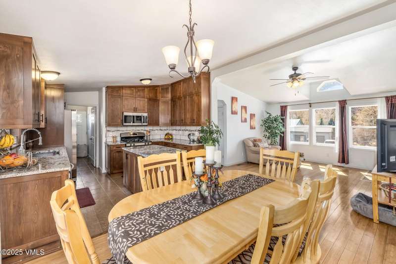Charming & Spacious Home in Eagle River Estates - No HOA! Welcome to this beautifully updated 5-bedroom, 3-bathroom home, perfectly situated on a generous lot in the highly desirable HOA-free Eagle River Estates neighborhood of Gypsum, Colorado. Step inside to 1,973 square feet of thoughtfully designed living space, where stylish wood flooring and plush carpet create a warm and inviting atmosphere. With a southwest-facing orientation and updated windows, afternoon natural light fills the home, enhancing its cozy yet spacious feel. The heart of the home is the open-concept kitchen and dining area, featuring granite countertops, new cabinetry, and stainless steel appliances, a perfect space for gathering and entertaining. On the main level, you'll find the primary suite with an updated 5-piece ensuite bath, along with two additional bedrooms and a shared full bathroom. Downstairs, the finished basement offers a cozy living area, two more bedrooms, and an additional bathroom, making it a perfect retreat for guests or additional living space. Outside, enjoy a large irrigated and partially fenced yard, ideal for pets, gardening, or unwinding in the fresh mountain air. The expansive Trex deck extends your outdoor living space, perfect for summer BBQs or peaceful evenings under the stars, and the large shed add rooms for extra storage. A spacious two-car garage, plus additional parking for up to five vehicles, ensures plenty of room for all your gear and toys. This meticulously maintained home offers the perfect blend of comfort, convenience, and Colorado charm, and with no HOA, you have the freedom to make it truly your own. Don't miss out on this exceptional opportunity-schedule your showing today!