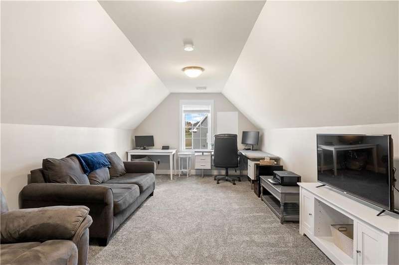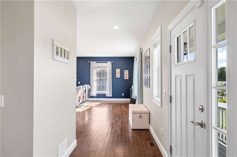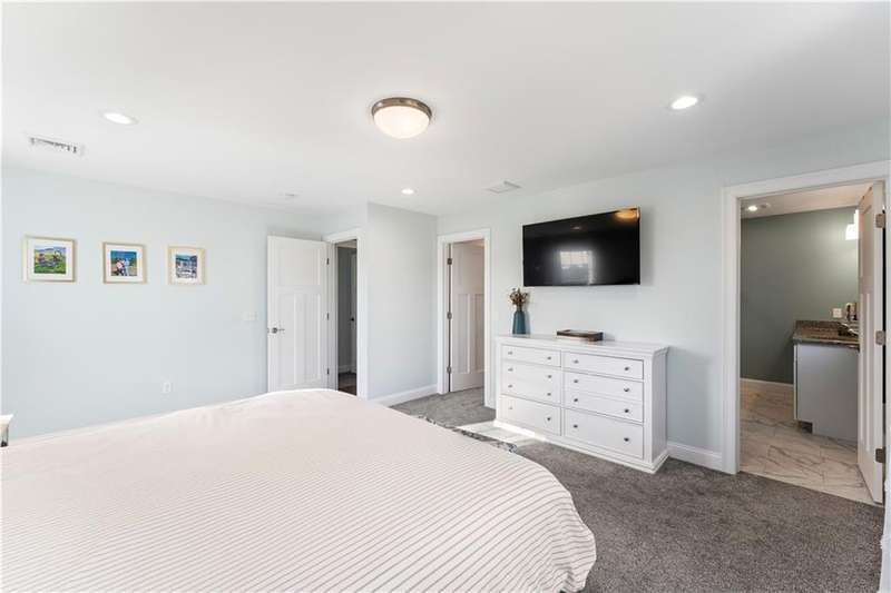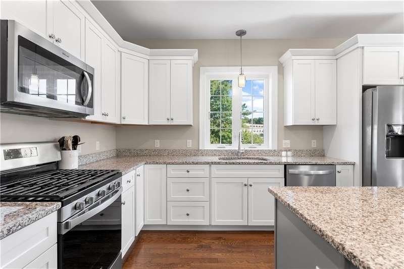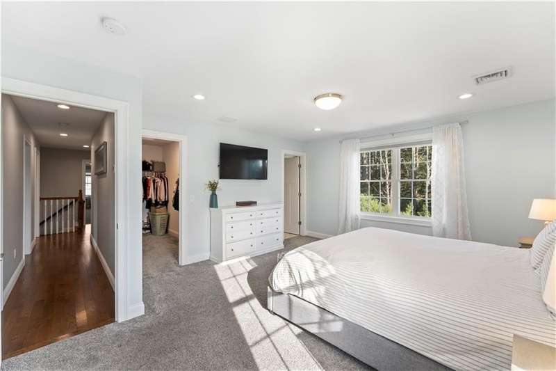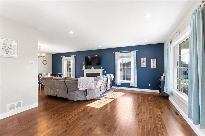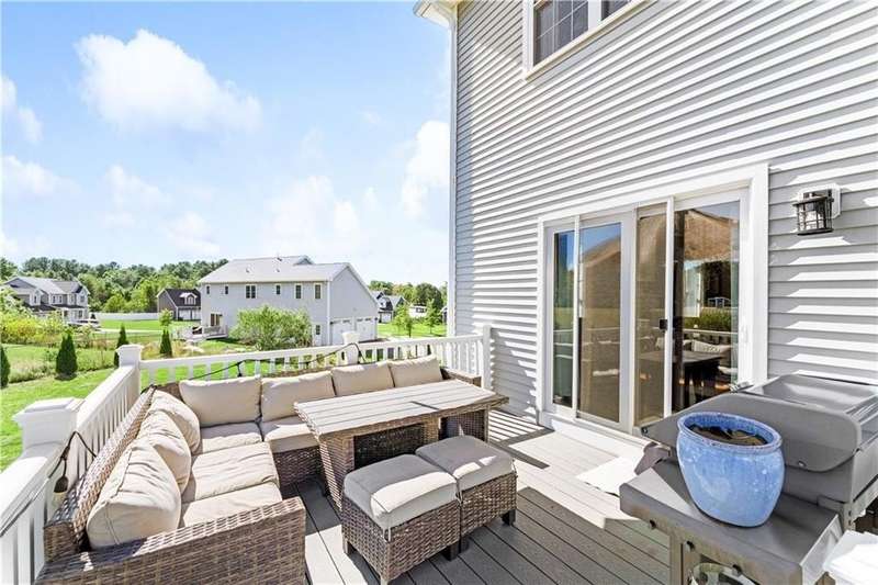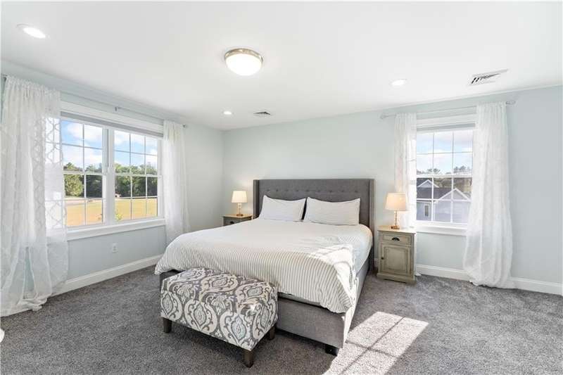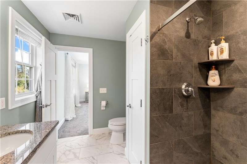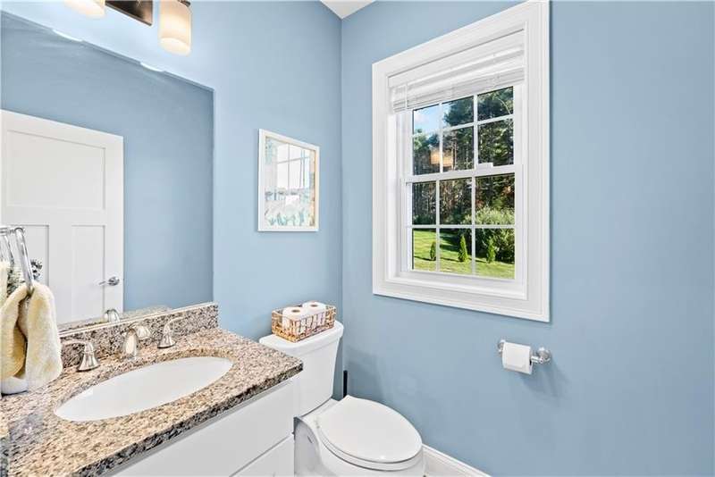 Located in Burrillville, right near Crystal Lake Golf Club, Steere Farm Estates was built to combine serene natural surroundings and tasteful modern living. This 3-bedroom, 2.5-bath home on a picturesque landscape, tended by built-in irrigation, begins with a covered front porch with low-maintenance composite decking. Step into the main level with hardwood floors throughout. A gas fireplace, picture window, and large sliders add pleasing light to the living area, dining area, and kitchen. A pantry closet, shaker cabinets, stainless appliances, stone counters, and a center island for informal dining add style and function. The railed rear deck lends more room to entertain with steps down to the sizable backyard and built-in fire pit. A mudroom, access to the attached 2-car garage, and a half bath complete the 1st floor. Upstairs, the owner’s suite has a walk-in closet and private bath with a dual-sink vanity and step-in shower. The remaining bedrooms sit near a convenient laundry room, dual-sink hall bath, and finished bonus space. The walkout basement is ready to be finished to suit your needs, while central A/C ensures comfort throughout this modern stunner. Discover Northern RI’s pristine lakes and protected forest areas for hiking, fishing, and swimming. Restaurants and the Assembly Theatre are nearby, along with local farms for fresh produce. The home is also less than 20 minutes from Bryant University.