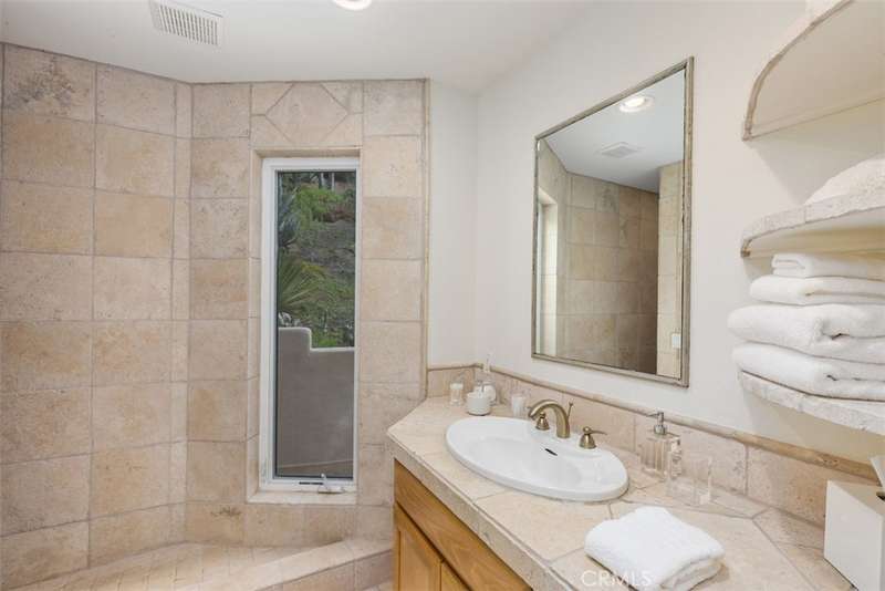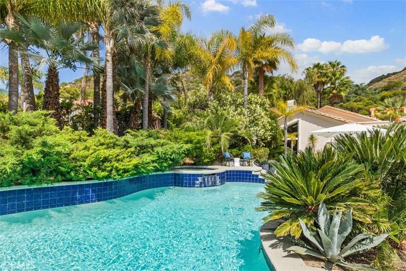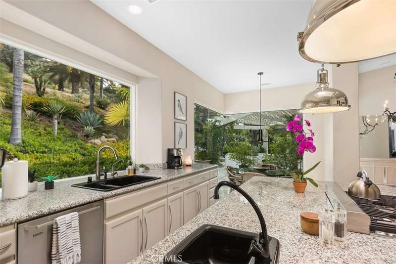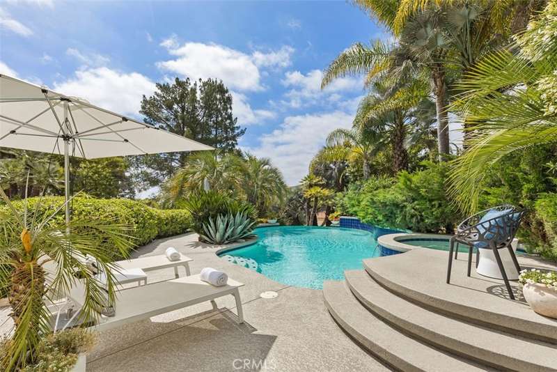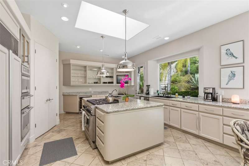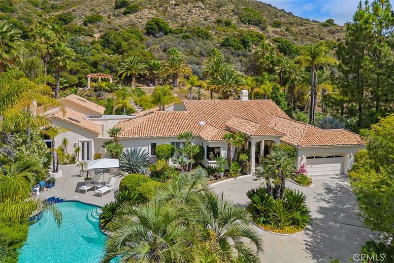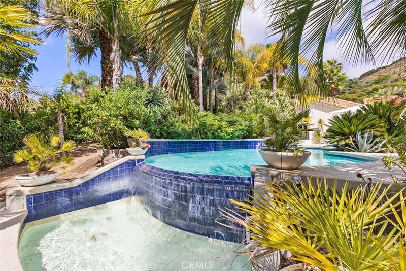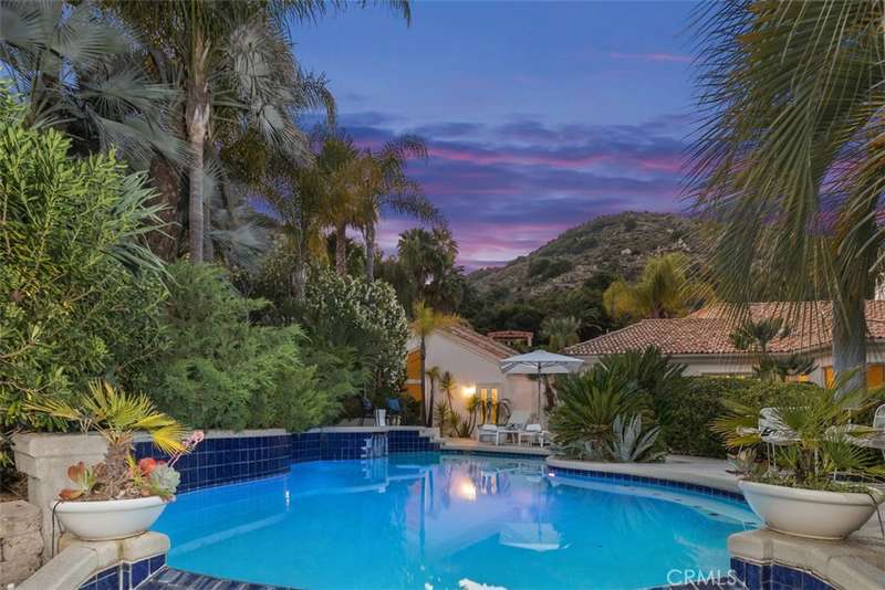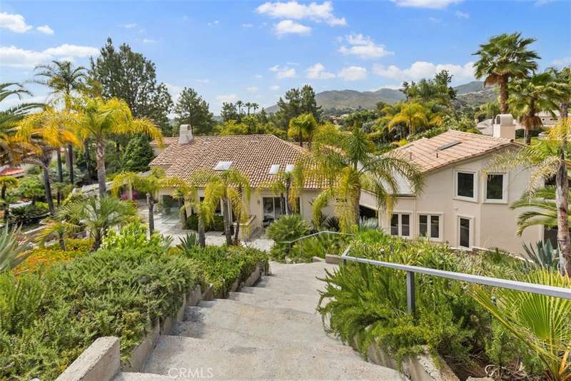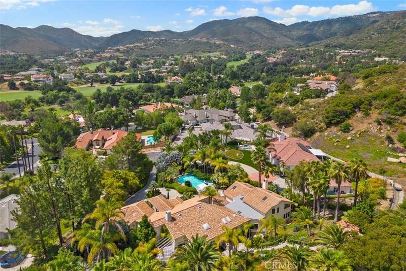 Nestled within Bear Creek, an exclusive gated community in Murrieta, this one of a kind estate offers unparalleled privacy with its own private gate. Thoughtfully designed, this 4741 sq ft one story home with 4 bedrooms and 5.5 baths showcases vast limestone floors imported from Germany that exude elegance and durability. The living room is a bright and inviting space w/ large windows that flood the room with natural light. A cozy fireplace adds warmth and charm with an adjacent formal dining room with views to the outdoors. The chefs kitchen is equipped with premier Thermador appliances, a walk in pantry, a spacious island w/ vegetable sink & wine refrigerator, perfect for culinary enthusiasts and a breakfast nook framed by floor to ceiling windows which look out to the 20 ft cascading waterfall and koi pond. This estate features a luxurious primary suite along with 3 additional en suite bedrooms (one with its own loft!) ensuring comfort and privacy for all! The family room located off the pool area includes a full bathroom for convenience making it perfect for enjoying the infinity edge pool and spa. Outside this private oasis has an enchanting exterior including the waterfall and koi pond, numerous sitting areas, palms and succulents creating a harmonious blend of luxury and nature. Top it off with stairs that lead to a gazebo overlooking the neighborhood with a postcard view! This estate is a true masterpiece within a serene and secure setting.