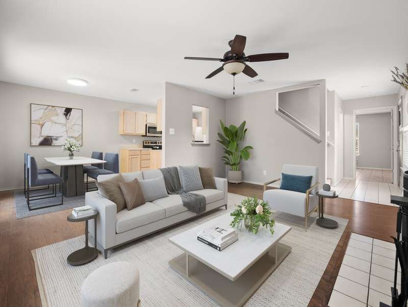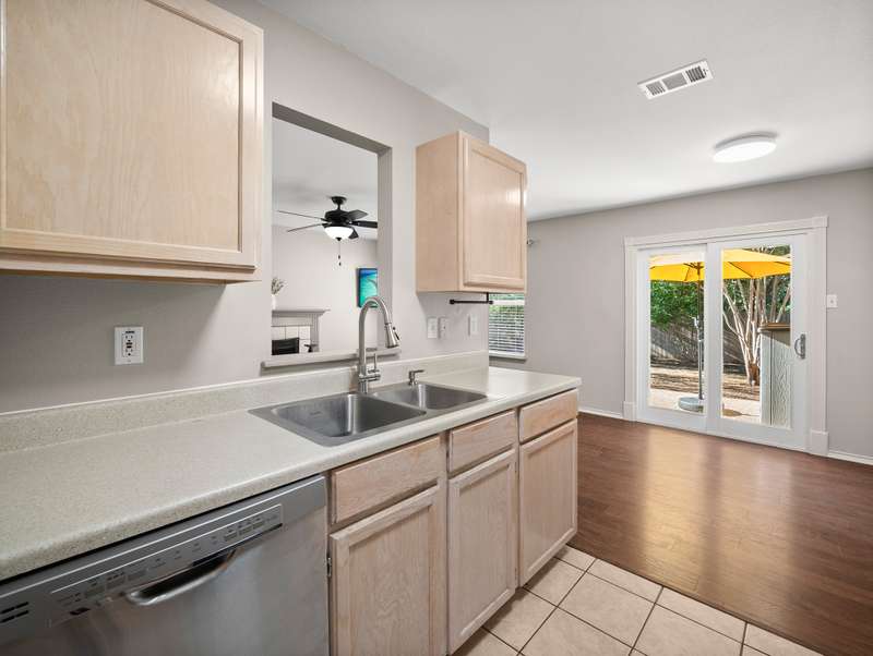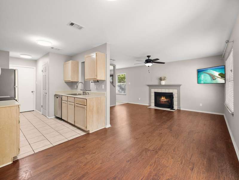 Nestled in the centrally located Tanglewood community, this beautifully maintained 3-bedroom, 2.5-bath townhouse offers both comfort and convenience with easy access to UTSA, USAA, and La Cantera. The home features spacious bedrooms with generous walk-in closets, updated bathrooms, and rich hardwood flooring throughout the main living area. Thoughtful landscaping and attractive curb appeal enhance the exterior, while the private backyard backs to a greenbelt, providing a quiet and secluded outdoor space. - 9/30/2025 3:17:33 AM