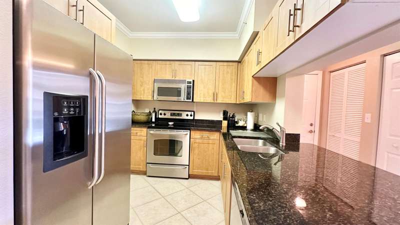 Beautifully maintained first-floor 2 bedroom, 2 bathroom condo in a desirable gated community. Features include a modern kitchen with granite countertops, wood cabinetry, and stainless steel appliances, plus a separate laundry room with full-size washer and dryer. The main living area is tiled throughout, with spacious bedrooms offering walk-in closets. Enjoy relaxing on the screened patio with garden views.Resort-style amenities include a pool, hot tub, fitness center, and tennis courts. Rent includes cable and water. Conveniently located just minutes from the Florida Turnpike, airport, downtown, shopping, and dining.