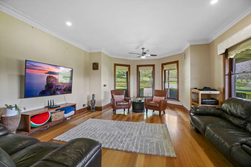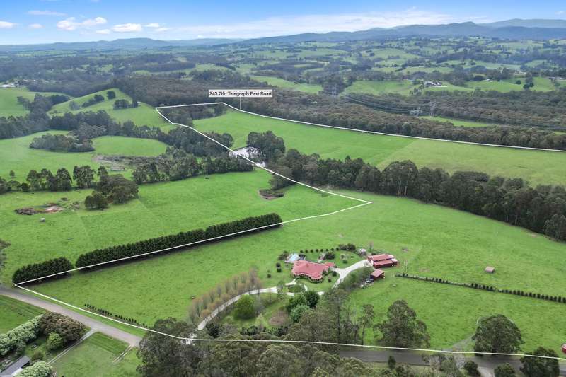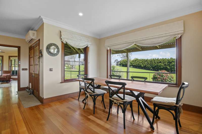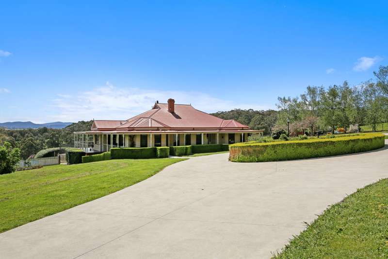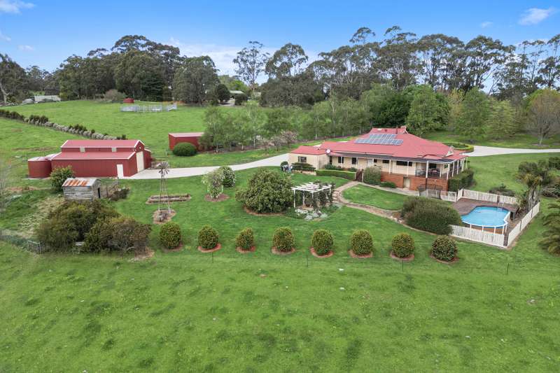 Positioned just North of Warragul and in close proximity to both Drouin and Neerim South townships is this outstanding 21.04 hectare (52 acre) property. Extensively improved and afforded an elevated aspect, a Maple-tree lined full concrete sweeping driveway provides entry to the stunning residence set in established and beautiful garden surrounds. Boasting panoramic rural and State Forest views, this country homestead with fully decked return verandah features 5 spacious bedrooms, main with walk in robe and modern ensuite with walk in shower, 3 living areas including formal lounge with open fire place, rumpus / games room and sun drenched open plan family / meals arrangement. The Blackwood timber kitchen offers a centre bench, walk in pantry, dishwasher and excellent Falcon stove. Other notable appointments are updated main bathroom, powder room, refurbished laundry, hardwood timber flooring, 9ft ceilings, feature cornice, solid fuel heating, split system cooling and elevated decked entertainers area privately positioned with views over the inviting solar heated swimming pool. An auto garage and expansive below residence store-room are also provided. The feature lawns and gardens are an assemblance of specimen trees, hedges, perfumed flowers and leafy foliage creating a private and captivating setting. Positioned at the end of the concrete drive is a 12x12m barn style-high clearance shed with auto roller door and toilet plus a 8x4.5m three sided colourbond shed. The productive pasture with shelter belts is gently sloping and adjoins picturesque Pilgrim Creek Reserve. Water is abundant with expansive roof catchment, 90,000 litre storage capacity and access to spring fed storage dam. This well-established property is truly impressive and presents as an outstanding opportunity to enjoy quality country living.
