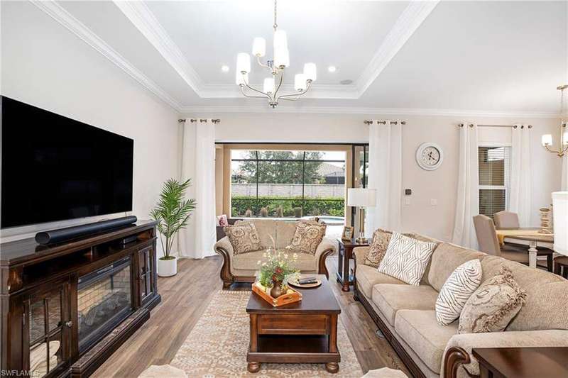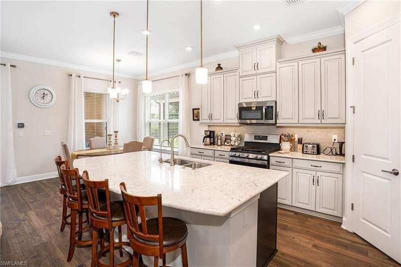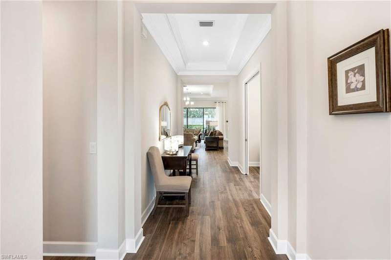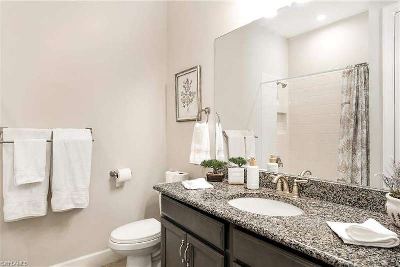 Location. Community. Quality Living - It All Starts Here! Welcome to Esplanade at Hacienda Lakes, a luxurious gated community perfectly located near Naples' most desirable shopping, dining, entertainment, and the area's world-famous beaches. Enjoy a relaxed, friendly neighborhood designed for resort-style living every day. This home offers over 2,200 sq. ft. of beautifully appointed living space, featuring 3 bedrooms, 3.5 baths, and a private den - the perfect blend of comfort and style. The open-concept main living area showcases luxury vinyl plank flooring throughout, while the upgraded gourmet kitchen includes quartz countertops, a gas cooktop, and modern finishes ideal for cooking and entertaining. Enjoy seamless indoor-outdoor living with pocket sliders that open to the covered lanai, where you can dine al fresco or unwind with a sunset cocktail. The primary suite offers a king bed, walk-in closet, dual vanities, and a spa-like walk-in shower. Each guest bedroom features its own ensuite bath and queen bed for privacy and comfort. Step outside to your private heated pool and spa, surrounded by lush landscaping for ultimate relaxation and tranquility - a perfect spot to soak up the Florida sunshine. Residents enjoy access to resort-style amenities, including pickleball and tennis courts, a fitness center, billiards room, community pool, lap pool, hot tub, and scenic walking and biking trails. This home offers luxury, convenience, and community - everything you need to live your best Naples lifestyle.