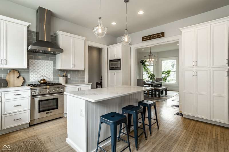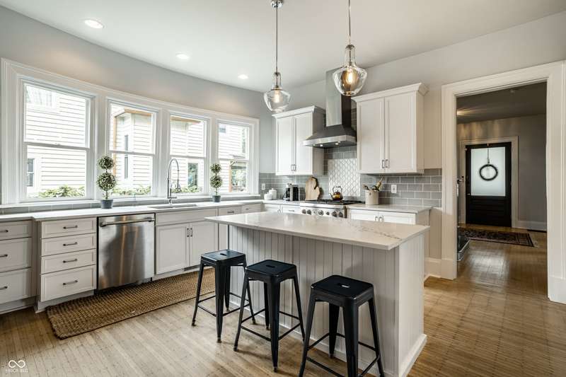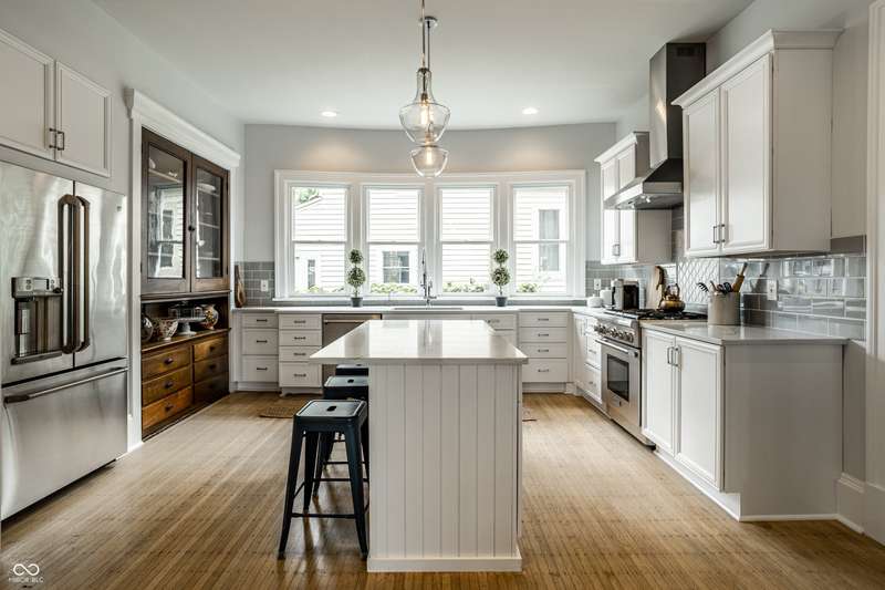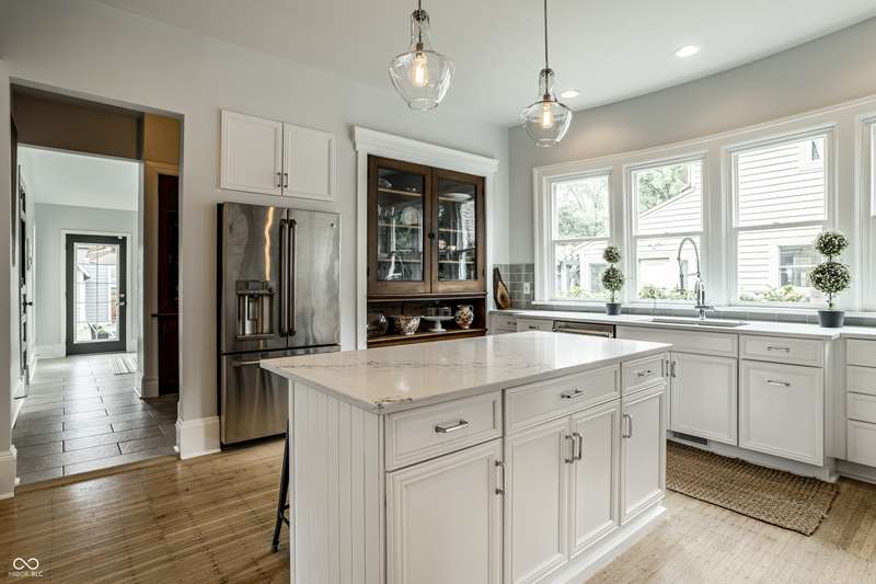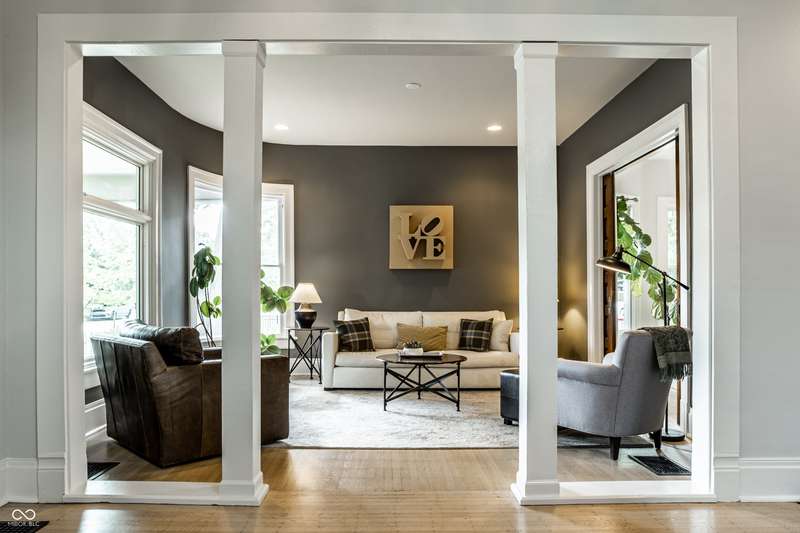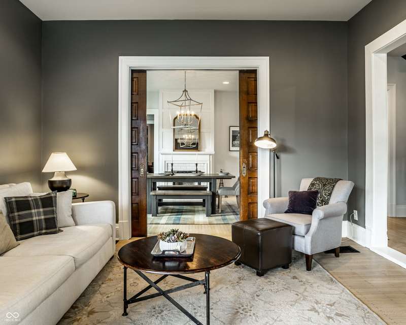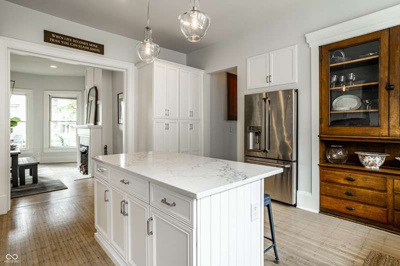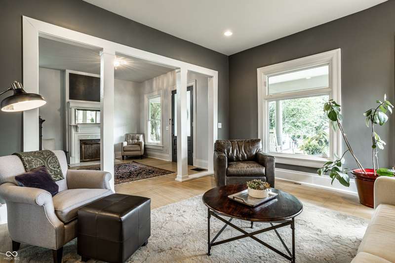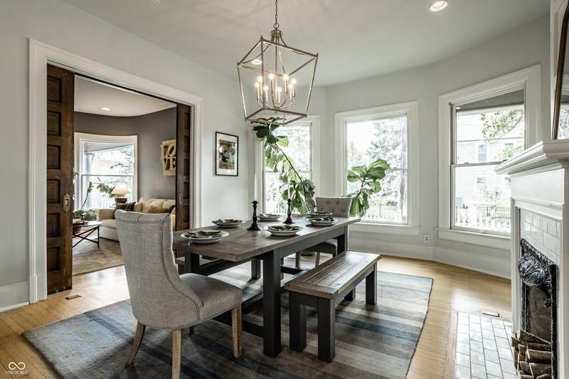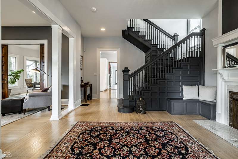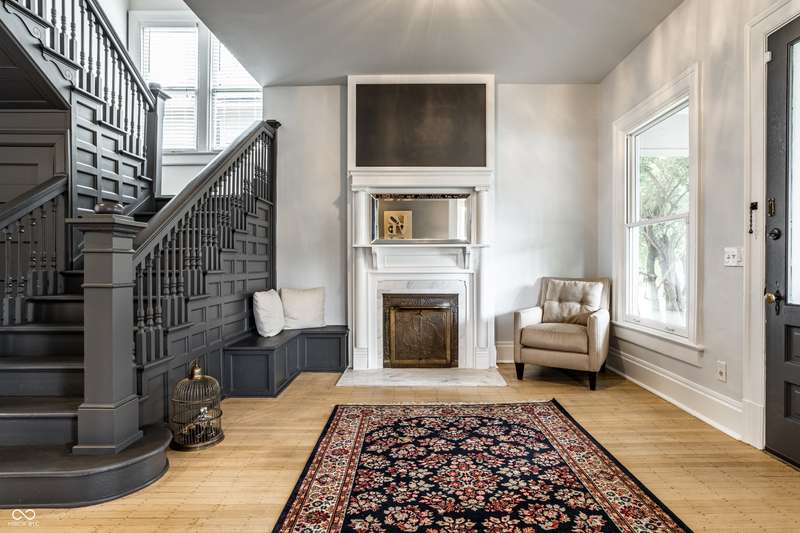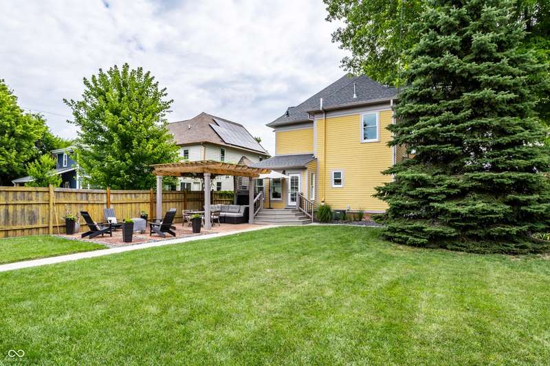 This stately Victorian sits elegantly on a large lot in idyllic Fall Creek Place where you'll often see children walking to nearby schools and neighbors biking to the Monon Trail for their evening ride. The home was originally constructed in 1900 and holds much of its original character - a wide and welcoming front porch, two fireplaces that once warmed the home, and expansive windows filling the large rooms with natural light. Much of the home has been improved over the last decade to appeal to today's standards. The kitchen boasts beautiful quartz counters, a large center island, ample custom cabinets, a Thermador gas range and other high end appliances. The nearby formal dining room is perfect for entertaining and easily flow to the large living room. A rear sun room provides additional space for relaxation and seamlessly connects to the homes manicured rear lawn. Set with private deck, pergola, fire pit, and fully fenced, the rear yard is a lovely space to run and play - on two or four legs! The upper level is host to three large bedrooms including a luxurious primary suite with elegant ensuite bathroom with heated floors. A spacious laundry room is ideal for keeping any homeowner organized. The finished third floor is an ideal hobby space of your choosing - home office, theater room, exercise equipment, crafts, bunk room - the options are endless. A two car garage rests at the rear of the property and currently houses an unfinished upper level providing further opportunity for additional finished space. All of this rests on a beautiful lot just minutes from downtown Indianapolis!