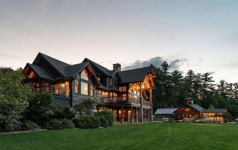 Extraordinary 7,000+ sq ft timber frame estate on 121 acres of pristine land with panoramic mountain views. This custom-built sanctuary offers the ultimate in privacy, sustainability, and luxury living. Designed as a legacy property, every detail was thoughtfully crafted, from the soaring Douglas Fir beams, grand stone fireplaces, extensive storage, expansive decks, and mahogany finishes. Entertain in style with an English-style pub, multiple guest suites, a state-of-the-art entertainment network, heated gunite pool & hot tub with a chemical-free EcoSmart system, pool house with an outdoor kitchen, pergola, and fireplace. A large woodshop, equipment barn, and multiple garages offer ample space for hobbies and storage. Additional outdoor amenities include separate koi and bass ponds, rose garden, a yoga platform with water feature, and 1.5 miles of private trails. Gardeners will delight in 70+ fruit and nut trees, 44 raised beds, greenhouses. Electrically independent with a 135KW solar array, battery storage, and two EV chargers. The estate was built as a forever home with an elevator and handicap accessibility. Located in tax friendly NH, near Fryeburg Airport, major ski resorts, golf, and the White Mountain National Forest. 80 minutes to Portland and 2.5 hours to Boston.