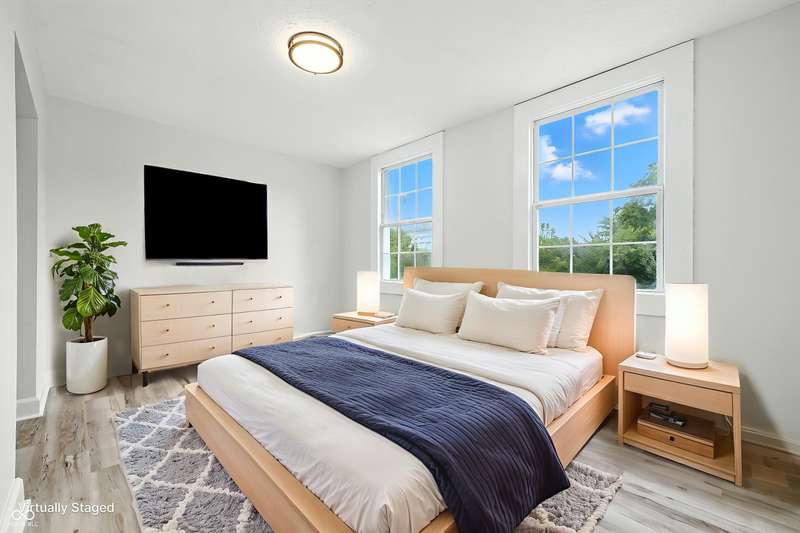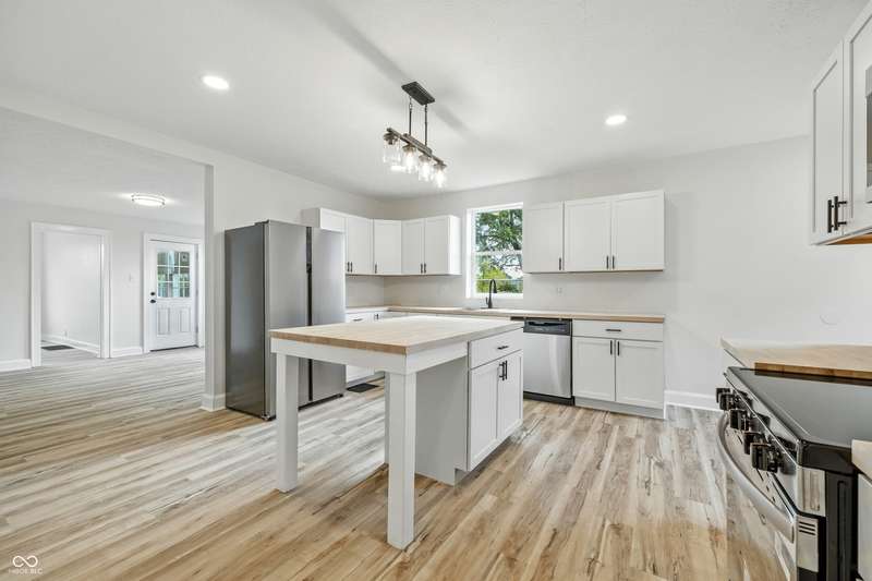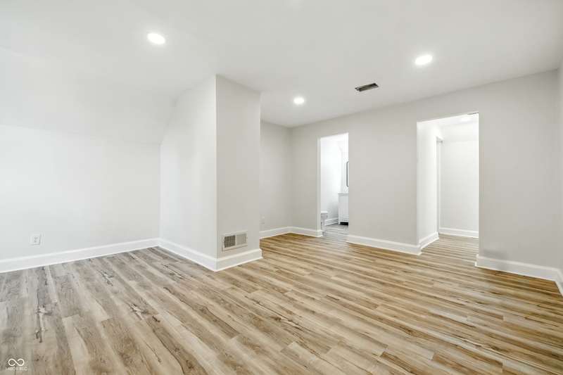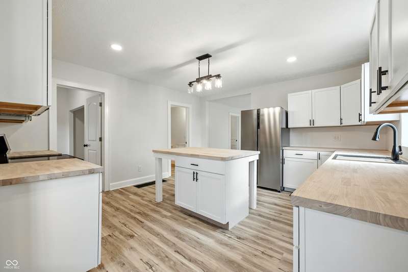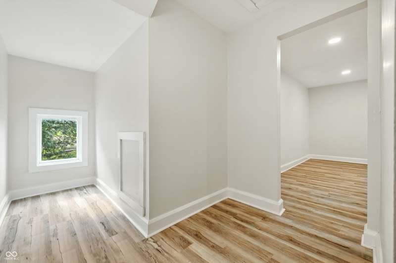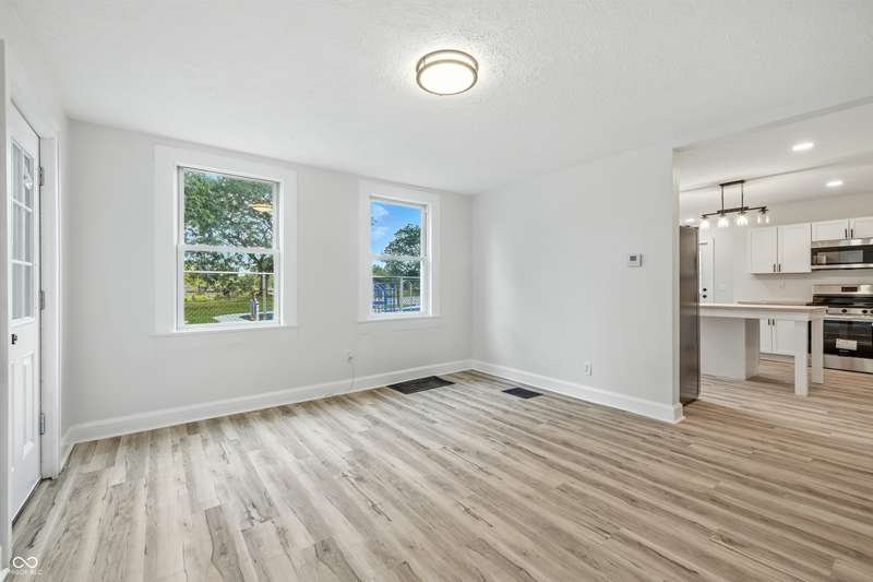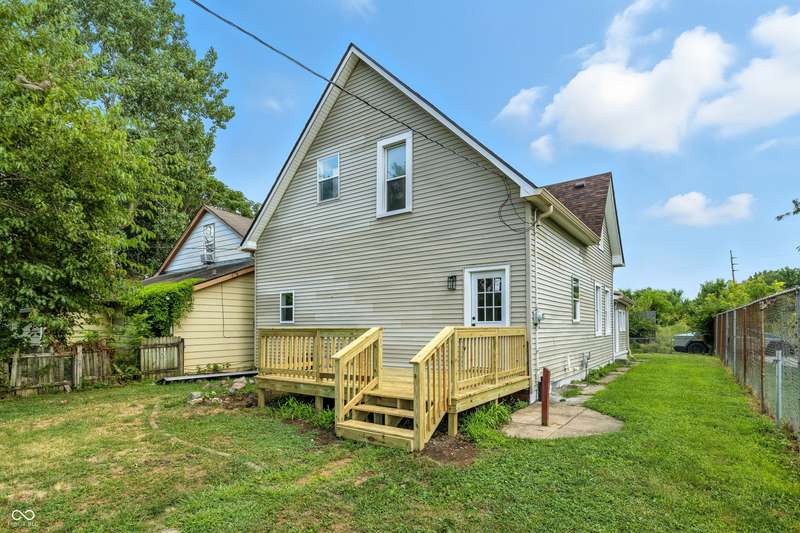 Located in the heart of the historic Bates-Hendricks neighborhood, this charming single-family home beautifully combines timeless character with modern comfort. Step into a spacious living room that's perfect for both relaxing and entertaining. The kitchen serves as the centerpiece of the home, featuring classic shaker cabinets for generous storage and a clean, stylish look. A large island provides ample room for meal prep and casual dining, while a convenient kitchen bar adds a welcoming space for gathering with friends and family. The main level offers two well-sized bedrooms, a full bathroom, and a versatile bonus room-ideal for an office, playroom, or guest space. Upstairs, you'll find an additional bedroom and full bath, perfect for a private guest suite or a secluded primary bedroom retreat. Out back, enjoy a brand-new deck and a spacious backyard-ready for outdoor entertaining or quiet evenings under the stars. Just bring your personal touch to make it your own. It's also right next to Sexson Park, which is perfect for the kids. You can keep a close eye on them right out of your kitchen window! With 2,044 square feet of living space on a 7,405 square foot lot, this 1896 gem presents a rare opportunity to own a piece of Indianapolis history while enjoying the ease of modern living. Don't miss out-schedule your private showing today!