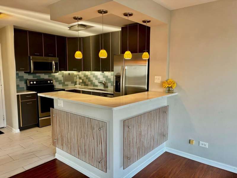 Updated unit floor to ceiling with panoramic views of the Lake Michigan, city, and park to enjoy not only from your unit, but also from your private balcony. Window treatments are controlled by the push of a button. Wi fi included along with basic cable. Red line conveniently located with bus stop across the street from the building. Just south of Loyola with beaches, shopping, and fine dinning near by. The El Lago features a 24 hr. door person, work out room ($5.00 per mo.) receiving room, sundeck, updated laundry room, and an on sight manager. Don't wait, this is one sweet unit!
