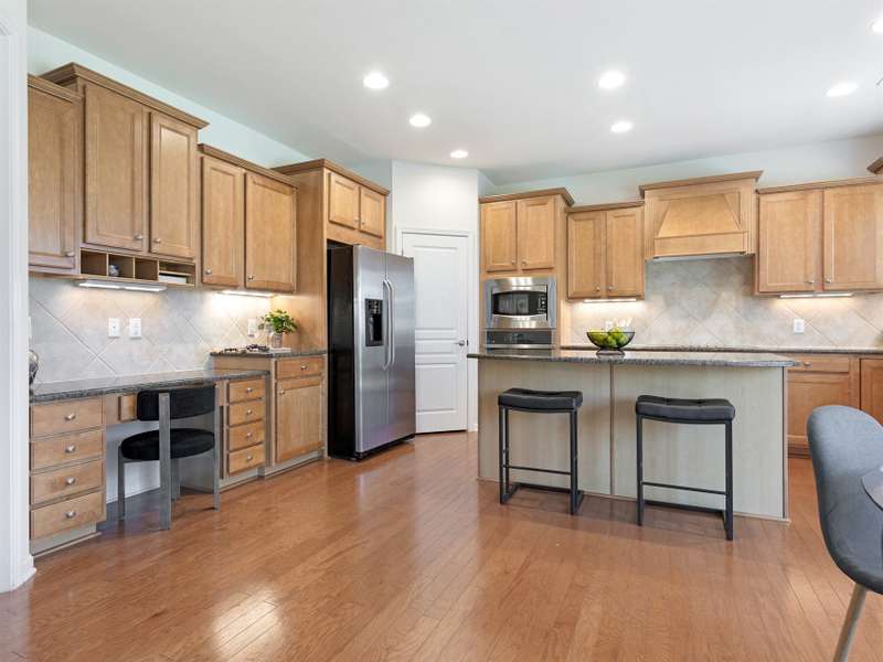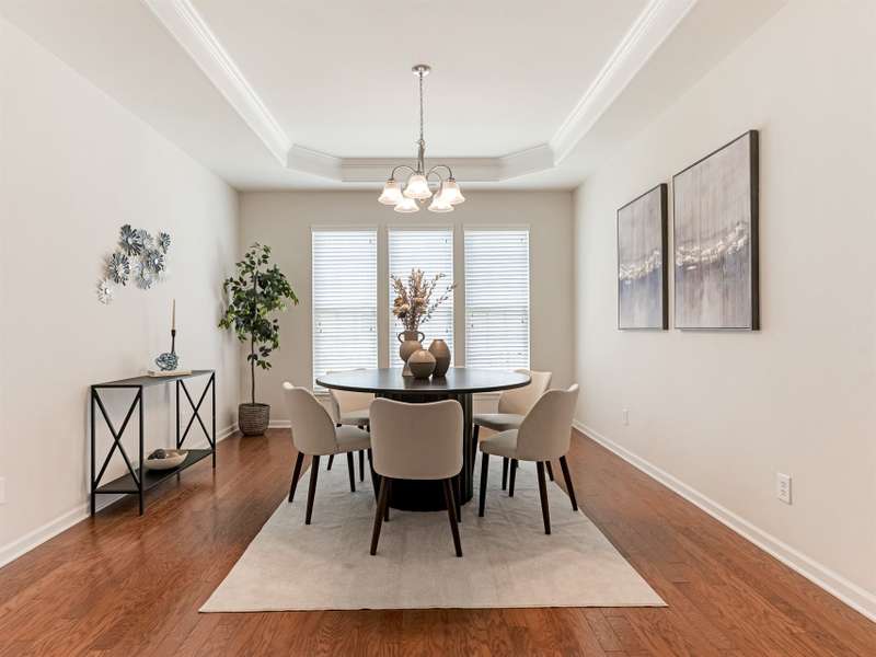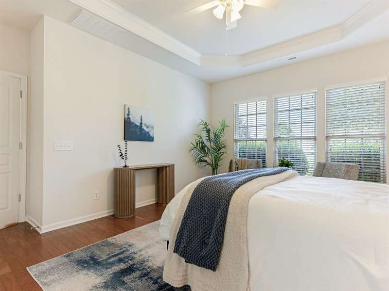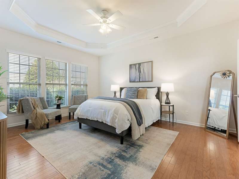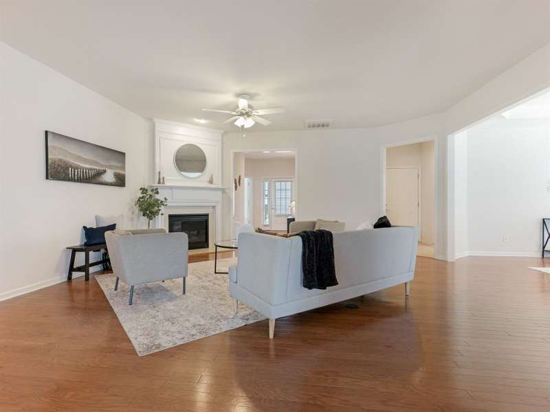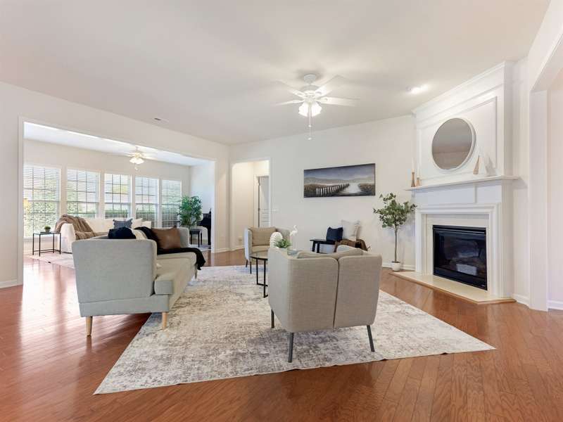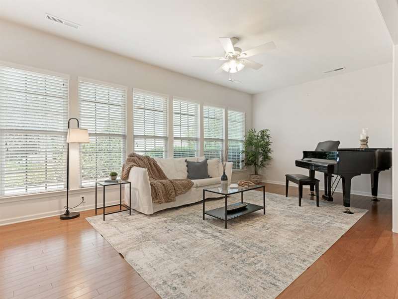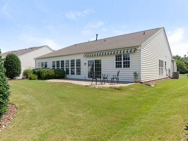 Beautiful home in the desirable Sun City neighborhood of Carolina Lakes, filled with natural light and featuring hardwood floors throughout. The open floor plan includes a formal dining room, 3 bedrooms plus an office, and 2.5 bathrooms. The kitchen boasts stainless steel appliances, granite countertops, and ample cabinetry. Enjoy the spacious sunroom with a wall of windows overlooking the beautifully landscaped yard. The large primary suite offers a spa-like bath with a garden tub, separate shower, and generous walk-in closet. Smart home features include a security system with Ring doorbell and a Rachio digital irrigation system controlled via smartphone. Step outside to a paver patio with a retractable awning?perfect for relaxing or entertaining. This well-maintained, move-in-ready home offers comfort, style, and smart convenience in an active, amenity-rich community.