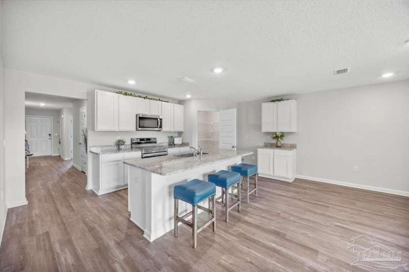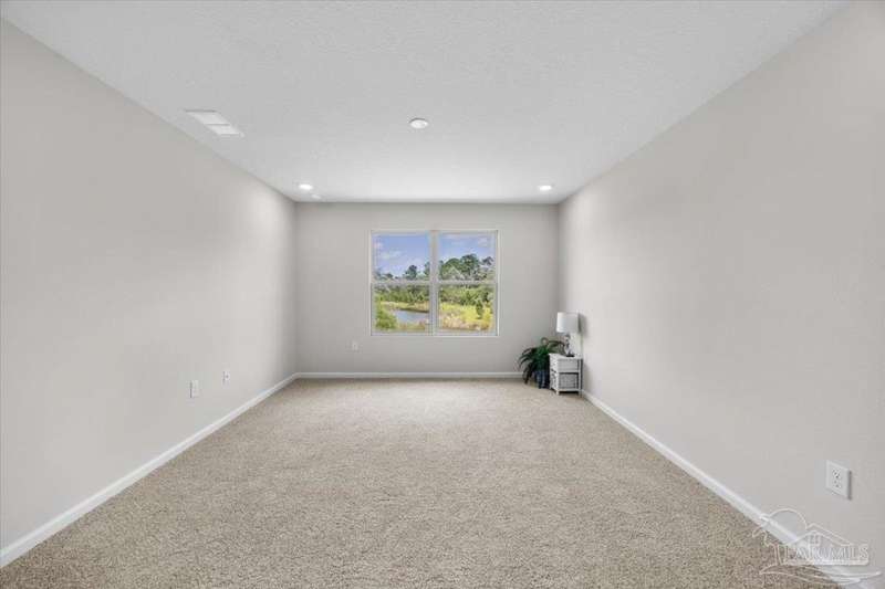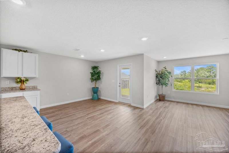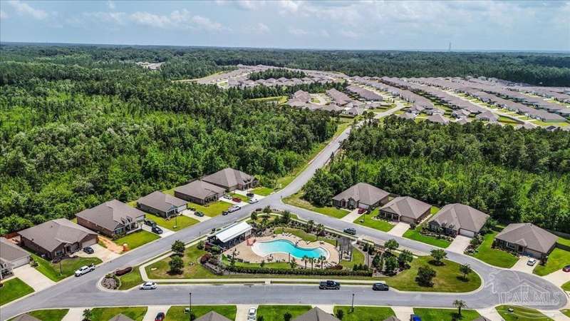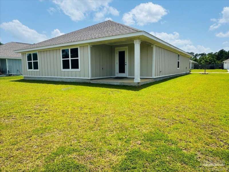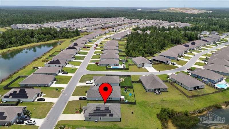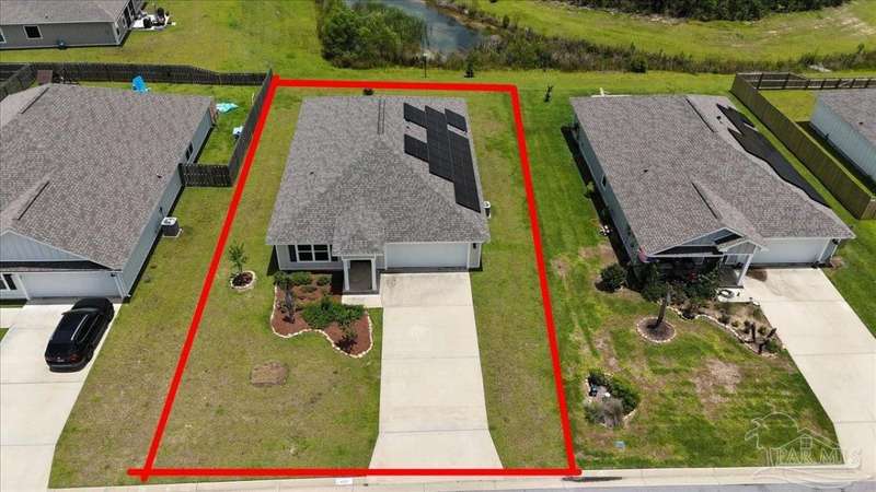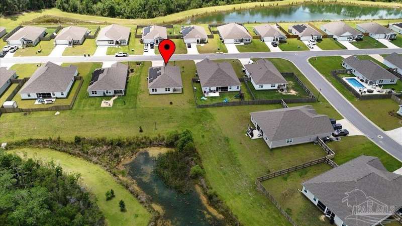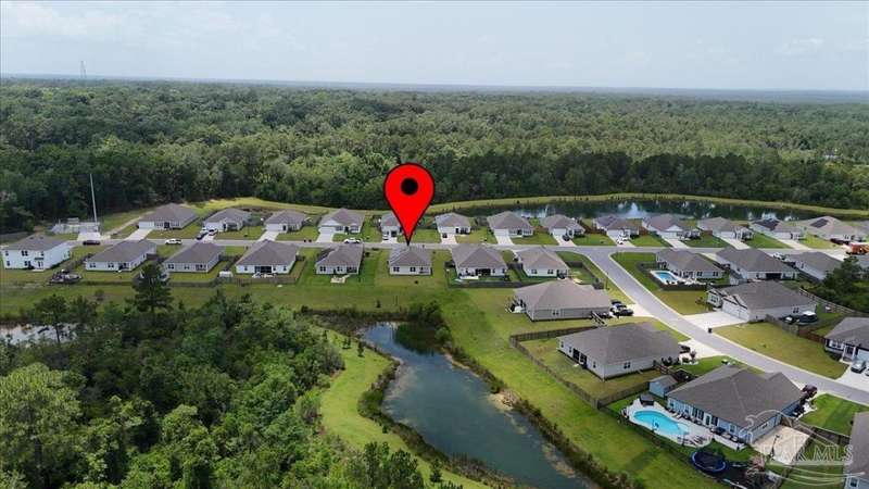 JUST LISTED!! Welcome Home! WOW! Here is your chance to own this stunning 4-bed, 2-bath home which sits on one of the largest lots in the neighborhood AND direct water views! OWNER finance options available! This sought after vibrant community features resort-style amenities including a sparkling pool, cabana bathhouse, grilling area, and underground utilities. Inside, you'll love the bright open layout - perfect for entertaining - with a spacious kitchen featuring granite countertops, stainless steel appliances, a large island bar, and a roomy corner pantry. The living and dining areas are filled with natural light and overlook the tranquil water. Step onto your covered back patio and unwind while taking in the serene views. The private primary suite is a true retreat with a walk-in closet, double granite vanity, oversized shower, and more stunning water views. A split floor plan offers three more bedrooms, a full bath, and convenient laundry room. Upgrades include luxury vinyl plank flooring, Smart Home technology (video doorbell, keyless entry, automated lighting, and more), fabric hurricane window protection, and energy efficient saving solar panels. This move-in ready home combines energy efficiency, style, and a rare assumable loan Fantastic West Pensacola location close to I-10, Navy Federal, shopping, and dining. Don't miss your chance to own a beautiful waterfront home in this sought-after neighborhood - schedule your showing today! (Buyer and Buyers Agent to verify all information)