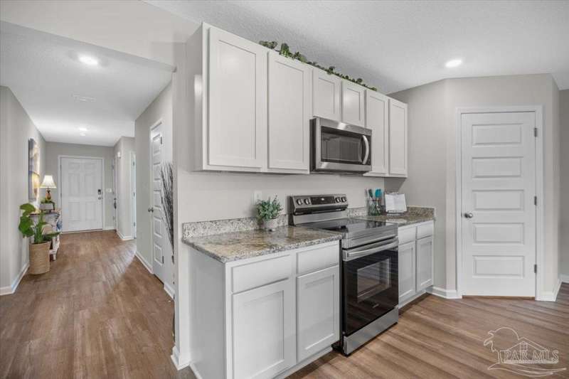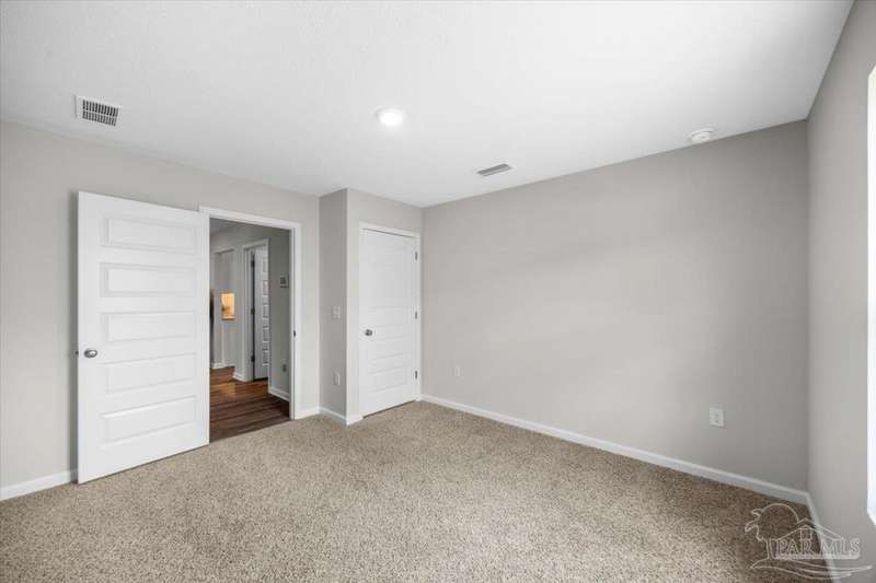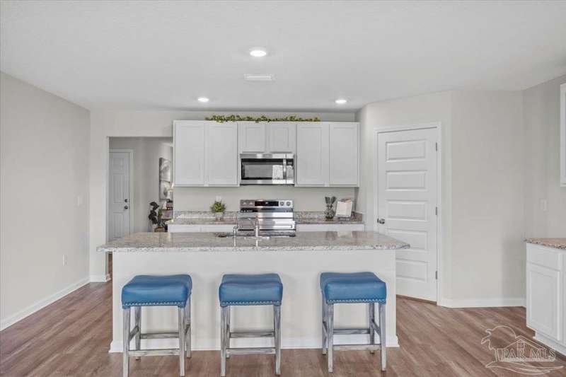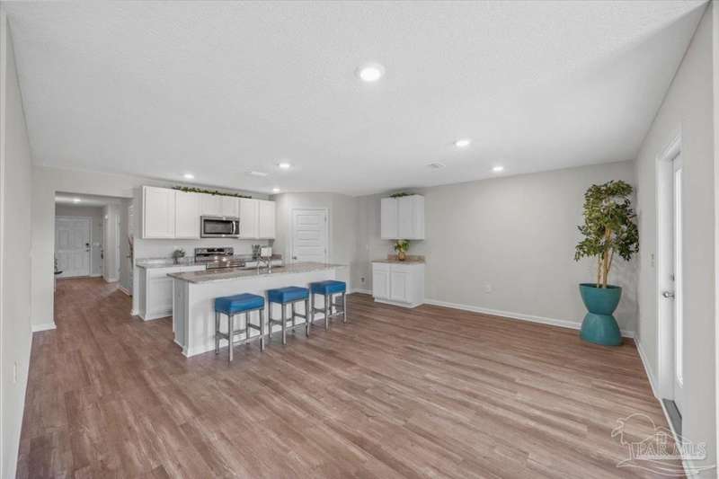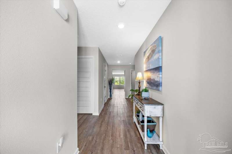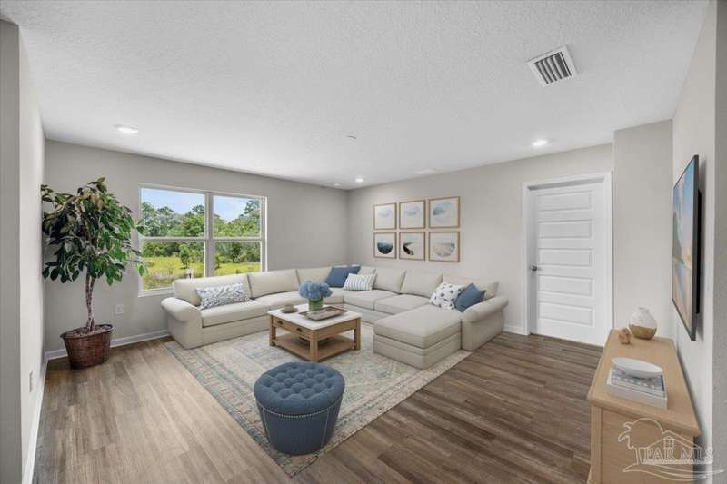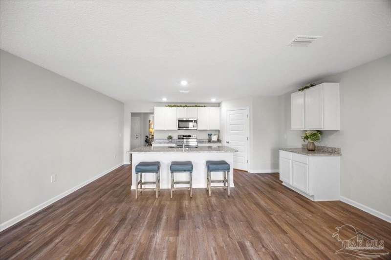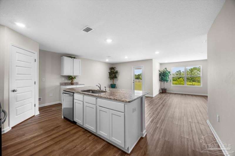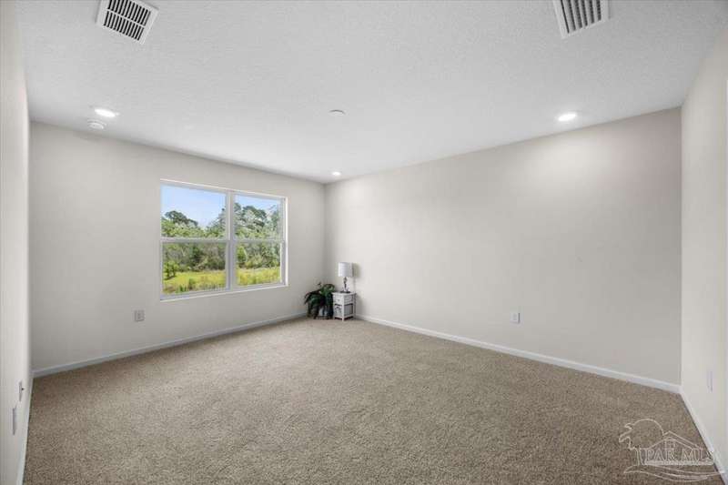 JUST LISTED!! Welcome Home! WOW! Here is your chance to own this stunning 4-bed, 2-bath home which sits on one of the largest lots in the neighborhood AND direct water views! OWNER finance options available! This sought after vibrant community features resort-style amenities including a sparkling pool, cabana bathhouse, grilling area, and underground utilities. Inside, you'll love the bright open layout - perfect for entertaining - with a spacious kitchen featuring granite countertops, stainless steel appliances, a large island bar, and a roomy corner pantry. The living and dining areas are filled with natural light and overlook the tranquil water. Step onto your covered back patio and unwind while taking in the serene views. The private primary suite is a true retreat with a walk-in closet, double granite vanity, oversized shower, and more stunning water views. A split floor plan offers three more bedrooms, a full bath, and convenient laundry room. Upgrades include luxury vinyl plank flooring, Smart Home technology (video doorbell, keyless entry, automated lighting, and more), fabric hurricane window protection, and energy efficient saving solar panels. This move-in ready home combines energy efficiency, style, and a rare assumable loan Fantastic West Pensacola location close to I-10, Navy Federal, shopping, and dining. Don't miss your chance to own a beautiful waterfront home in this sought-after neighborhood - schedule your showing today! (Buyer and Buyers Agent to verify all information)