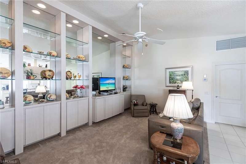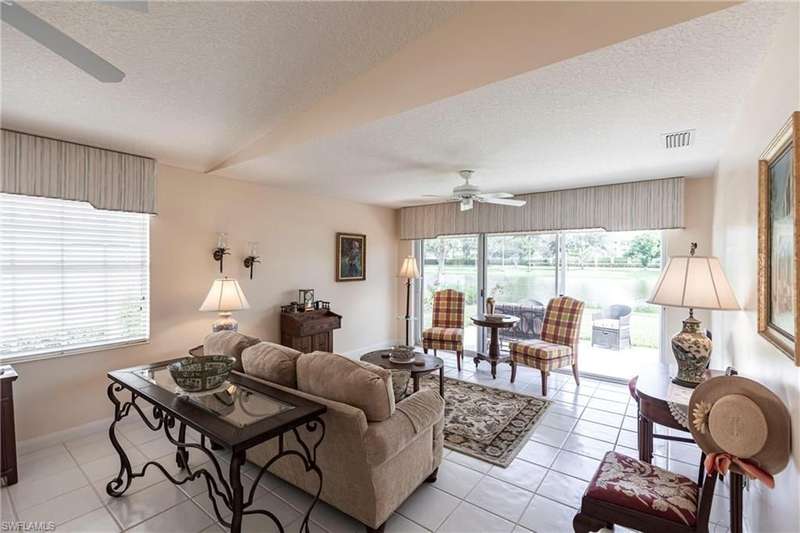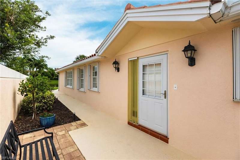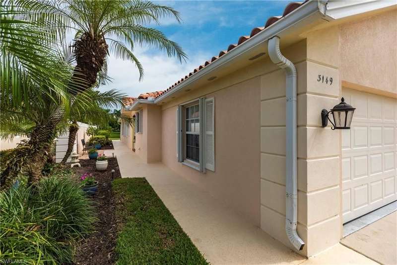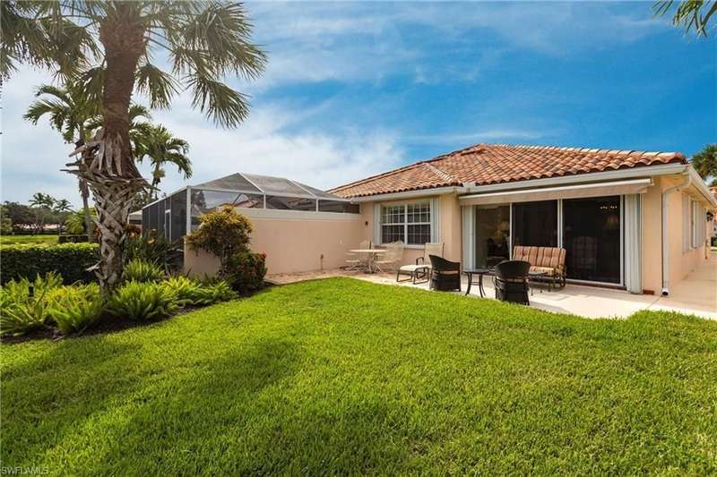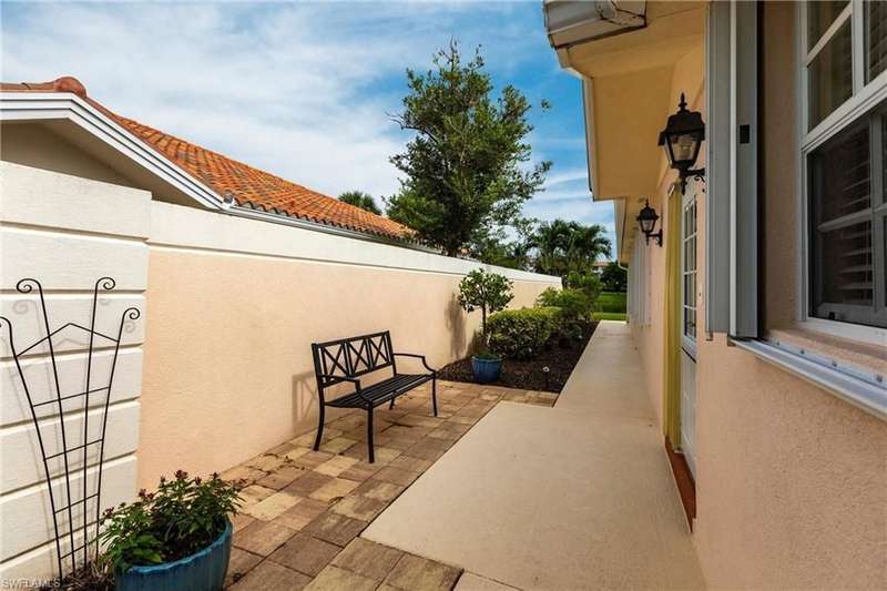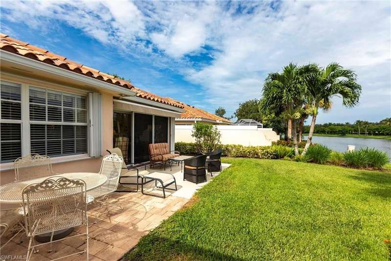 Lovely North Naples extended Capri villa with 140 more square feet of living space inside, featuring 2 bedrooms, 2 bathrooms, open den area, great room, and 2 car garage. Serene, extra wide water views and very private with no homes across the lake from this one. New clay tile roof was installed this year! Poly-B pipes were replaced in 2016. Andorra Court residents enjoy a very short drive to the gate and a short stroll over one bridge to the community restaurant and amenities center! Less than 5 miles to the ever popular Vanderbilt Beach and 4 miles to the shopping and dining gem - Mercato! There is so much to be a part of here - Tennis, Pickleball, Bocce, Gym with lap pool, 2 heated resort pools, miles of paved walking paths and so much more! You will love this home, this location, and this community!!