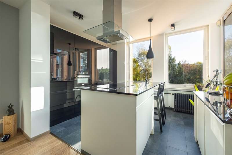 WILRIJK - Park Den Brandt: Characterful, ready-to-use 3-bedroom flat in Art-Déco building in prime location. EPC-label B. ; Located on the 1st floor of a well-maintained building, this flat combines charm with modern comfort. It is located a stone's throw from Park Den Brandt and the Nachtegalenpark. ; DESCRIPTION ; Large entrance hall with separate toilet. The spacious, bright living room with large windows opens onto the open kitchen, which is oriented to the east so you can fully enjoy the morning sun. Open kitchen equipped with Bosch appliances (built-in fridge, freezer, combi-microwave oven, induction hob and dishwasher), cooking island with dining arch and a multitude of lacquered cupboards. Connection for washing machine and tumble dryer is also provided. ; The flat has 3 bedrooms, one of which opens onto the pleasant rear terrace with practical storage room. Modern bathroom with designer, freestanding bathtub, separate walk-in shower, washbasin cabinet and towel dryer. ; Private cellar. ; PARTICULARS : ; *Alarm * Individual gas heating * Conveniently located near approach roads, shops and public transport * Easy parking in the street * EPC label B * Elevator ;