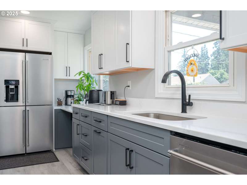 Spacious Ranch-Style Home with Modern Updates & Finished Basement! Welcome to this beautifully updated 5-bedroom, 2.5-bathroom ranch-style home offering the perfect blend of classic comfort and modern convenience. With a thoughtfully finished basement and timeless updates throughout, this home is move-in ready and packed with features you'll love. Main Level Highlights: Inviting living room with rich hardwood floors and a cozy wood-burning fireplace. Fully remodeled kitchen featuring quartz countertops, soft-close cabinetry, stainless steel appliances (all included), and stylish LVP flooring. Updated bathrooms with modern fixtures, tile flooring, quartz counters, and a stunning barn-style shower door in the main bath. Brand new interior doors and finishes throughout. Convenient laundry area with new sink and built-in storage cabinets. Lower Level Perks: Spacious family room with second wood-burning fireplace. Two additional bedrooms (one non-conforming). Bonus storage room/workshop space—perfect for hobbies or organization. Additional Features: Attached 1-car garage. Central A/C for year-round comfort. This versatile home offers room to grow, relax, and entertain—inside and out. With quality renovations and a functional layout, it’s ideal for families, multigenerational living, or those who simply want more space without the work of remodeling. Don’t miss your chance to own this stylishly refreshed home—schedule your tour today! [Home Energy Score = 5. HES Report at https://rpt.greenbuildingregistry.com/hes/OR10240024]