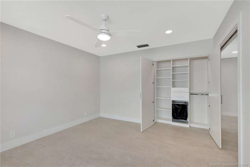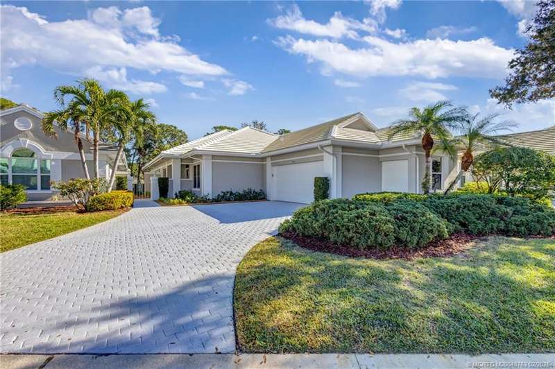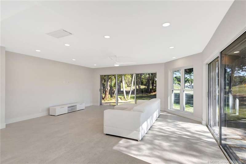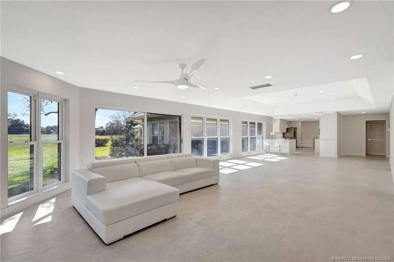 Experience unparalleled elegance in this fully renovated home in the prestigious Monarch Country Club with over $300,000 in upgrades. The split floor plan features three spacious bedrooms, including two master ensuites with custom-built closets. Elegant 2 x 4 tile flooring, 5.25 inch baseboards, and solid wood interior doors enhance the sophisticated design. The gourmet kitchen boasts Thermador appliances, a Thermador wine storage unit, complemented by a Hansgrohe faucet and stainless steel undermount sink. Luxurious bathrooms feature tempered glass shower doors, and Crosswater Reiss remote-controlled toilets. Additional highlights include custom impact windows, a Home Connect WiFi system, and modern ceiling fans. Enjoy serene 17th fairway views from the landscaped yard. A paver driveway leads to a 2-car plus golf cart garage with Swisstrax flooring and premium cabinetry. Unmatched lifestyle in a sought-after golf course community.