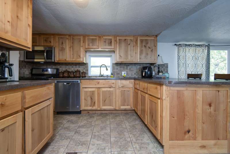 3.38 Beautiful Acres in the Strafford School District! Enjoy the perfect blend of country living with this charming 3 bedroom 2 bath home on 3 scenic acres just minutes from Springfield. Featuring 1624 sq. ft. of comfortable living space, this property offers an open living room with a cozy gas fireplace, creating a warm and inviting atmosphere. The kitchen boasts beautiful pine cabinets and stainless steel appliances, with a washer and dryer included for added convenience. Recent updates in 2018 include a new roof, Anderson windows, and a fully remodeled bathroom. A storm shelter adds peace of mind, and the acreage offers endless potential for outdoor enjoyment, gardening or relaxing in nature. Come see this lovely home and the country lifestyle it offers!