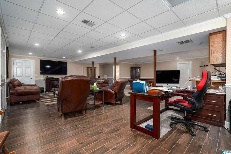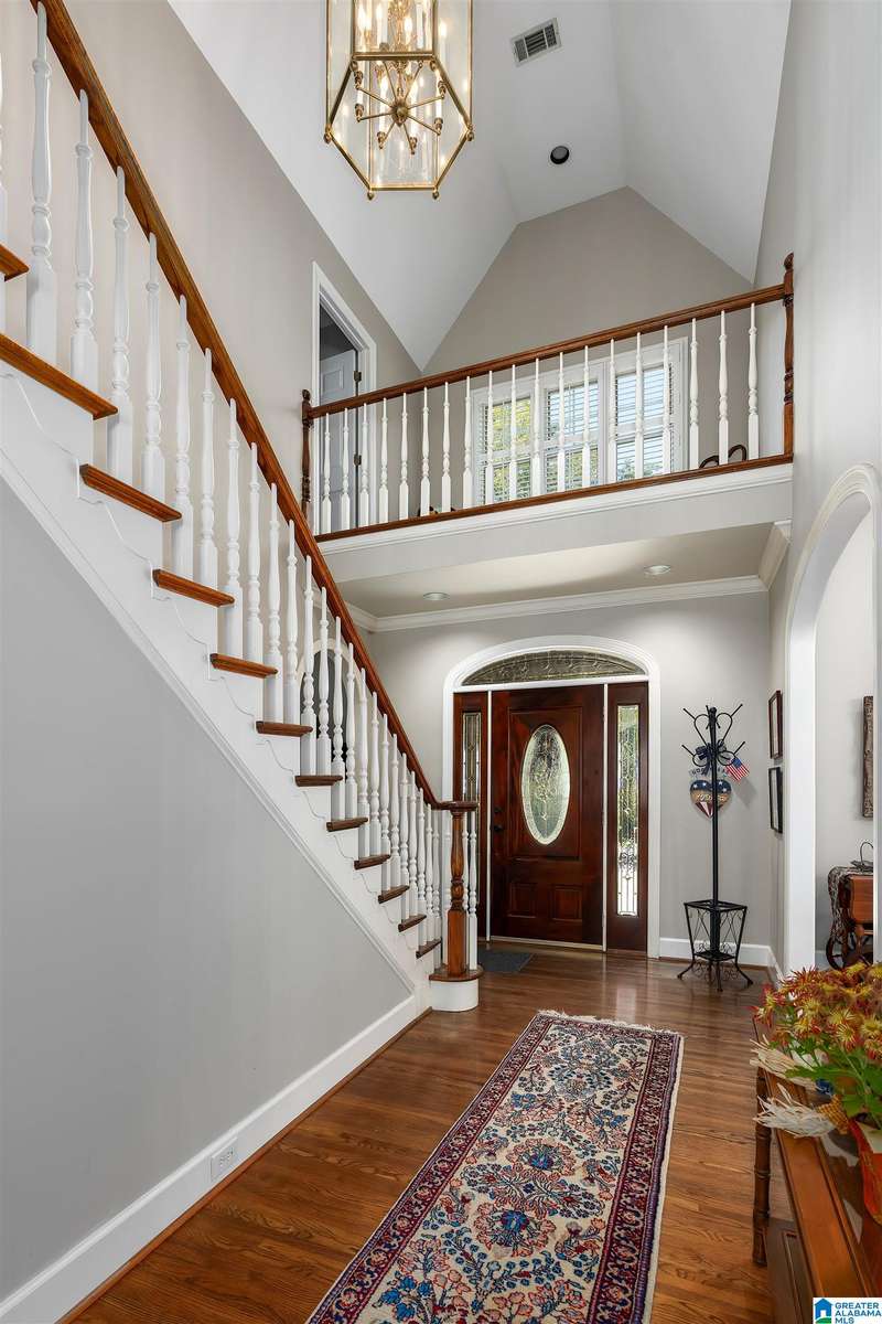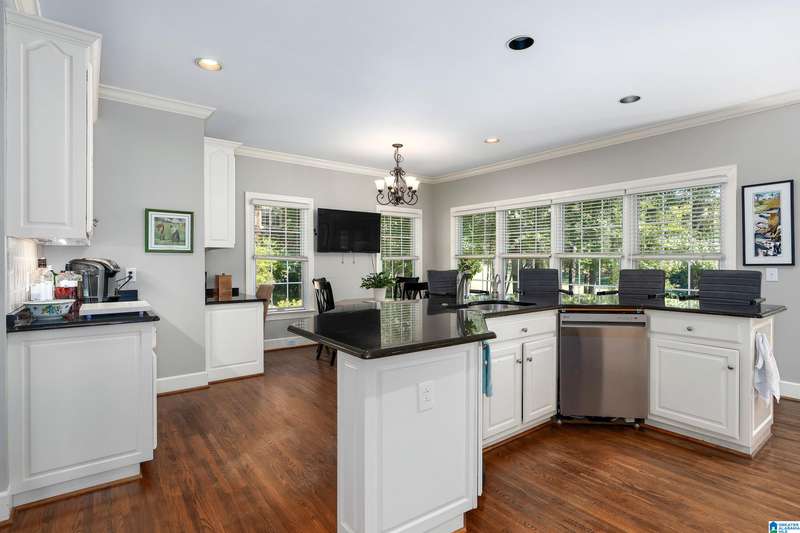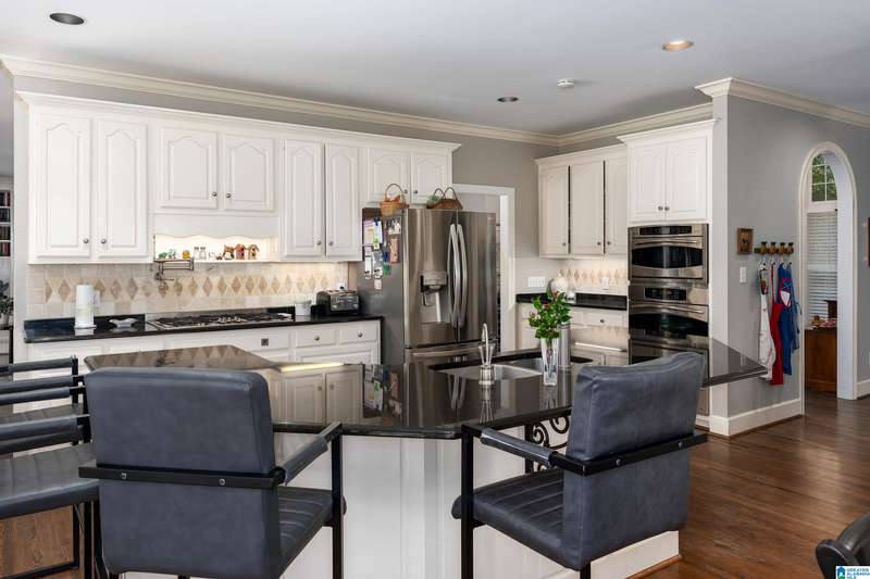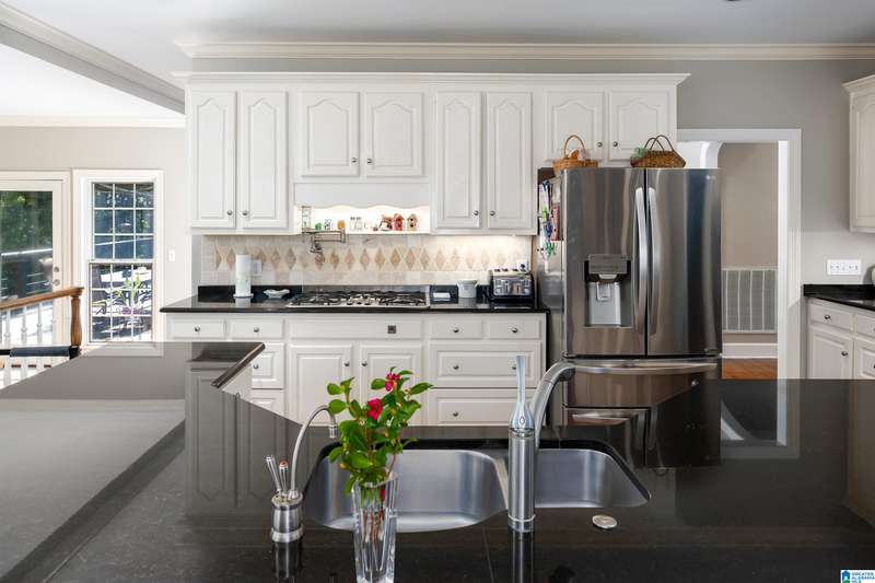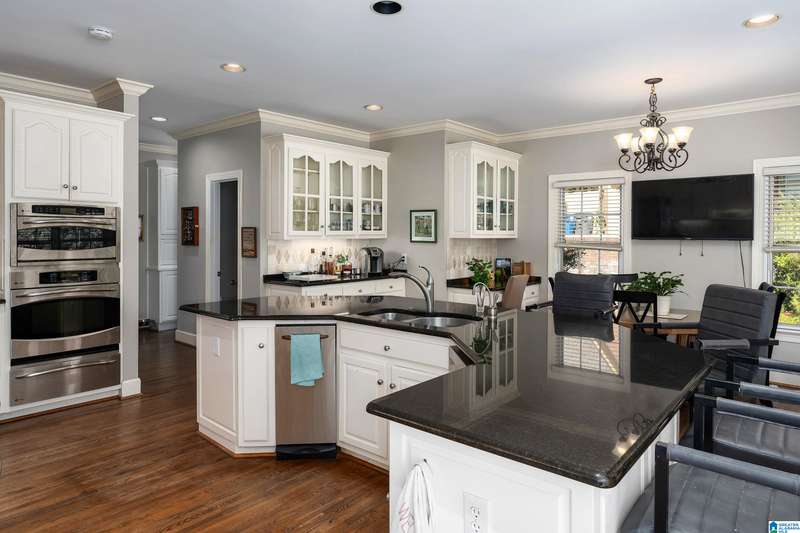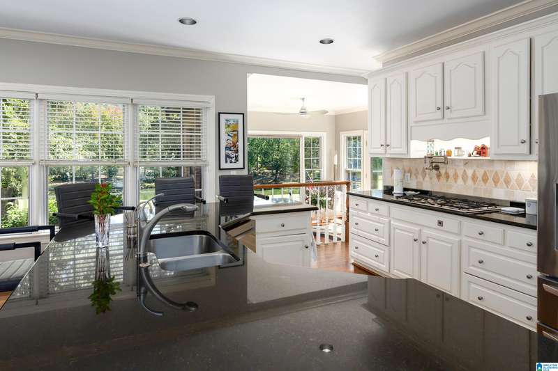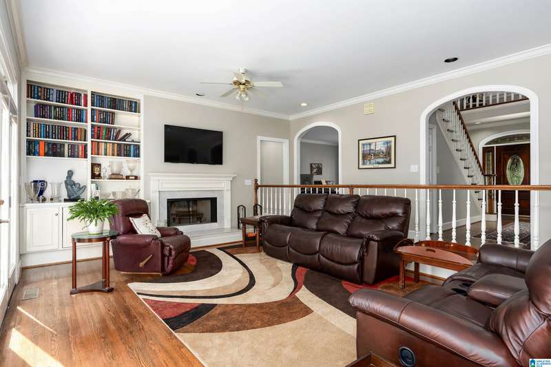 Amazing views from number 2 Green of Greystone Founders Golf Course. Home: 2-story Foyer, Living Room, Formal Dining Room, Den with woodburning fireplace, built-in bookcases. Large remodeled Kitchen with granite countertops, ss appliances; double ovens with warming drawer, dishwasher, gas cooktop, plus Wet bar and built-in desk. Cozy Breakfast Room. Huge Master Suite with Fireplace, plus Remodeled Master Bath with double shower, separate vanities, huge closets. Power Room on ML. Upstairs features 3 Large Bedrooms, 2 Jack N Jill Baths, lots of attic storage. Hardwood floors on both levels plus some plantation shutters. Crown Molding and high ceilings are extensive throughout house. Downstairs features Huge Media/Game Room, Full Bath, Den area with Fireplace. Tons of storage plus 3 car garage. Lots of storage under New Deck. ML Parking Pad, Roof 2010, Landscaped yard overlooking the golf course. Popular Shandwick Place with easy access to front gate and rear gate. Hoover City