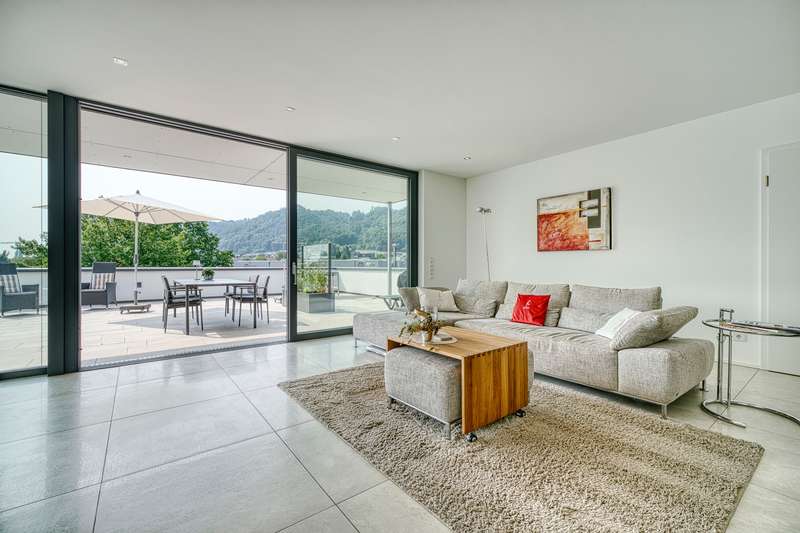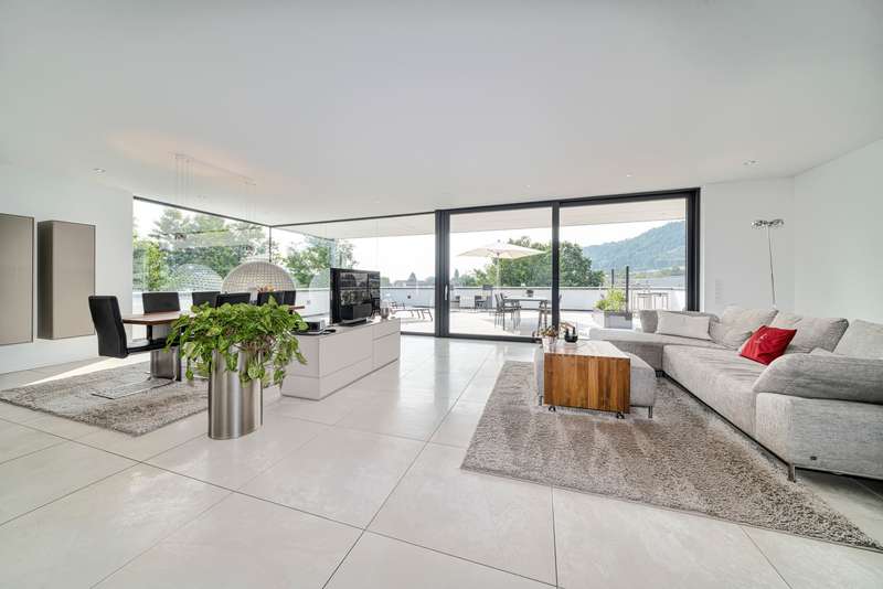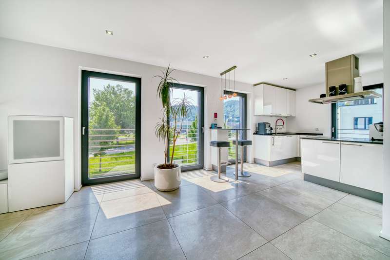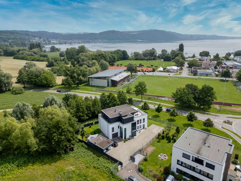 An impressive commercial property is for sale, which was completed in 2016 and is located on a spacious plot of approx. 1,216 m² near the lake. This property offers a wide range of potential uses and is ideal for entrepreneurs looking for a modern and function-oriented location. The property consists of two separate commercial units that can be used flexibly and adapted as required. These units are ideal for sectors such as lawyers, textile retailers or physiotherapists and benefit from the high-quality fittings and well thought-out spatial concept. In addition to the commercial units, there is a comfortable owner's apartment on the premises, which enables short distances and offers additional potential. The property impresses with its modern architecture and solid construction, which meets both aesthetic and practical requirements. Floor-to-ceiling, large windows ensure bright interiors and create an inviting working atmosphere. The units are equipped with three fitted kitchens that offer maximum functionality. A sunny, very large terrace extends the living and working area outside and offers an opportunity for relaxation or for outdoor client events. Direct access to the spacious plot allows flexible use for outdoor activities or additional building projects. Another advantage of this property is the existing fiber optic connection, which ensures a fast internet connection and thus an efficient way of working. An elevator in the building guarantees barrier-free access to the upper floors as well as convenient transportation of materials or goods. There is also a carport on the premises, which offers sufficient space for several vehicles and thus ensures a secure parking space for employees and visitors. The well thought-out design and equipment of the property ensure low operating costs and sustainable use. The location of this property is characterized by its immediate proximity to Lake Constance, which not only creates an attractive working environment, but can also be used for leisure activities. The combination of business potential and high quality of life makes this commercial property a special offer on the real estate market. This property offers you the opportunity to realize your business vision in an attractive and functional environment. For further information or to arrange a viewing appointment, please do not hesitate to contact us. Take this opportunity to acquire a property that meets your business needs as well as offering high quality living. Contact us today to find out more about this versatile property.