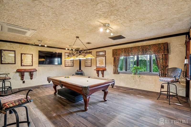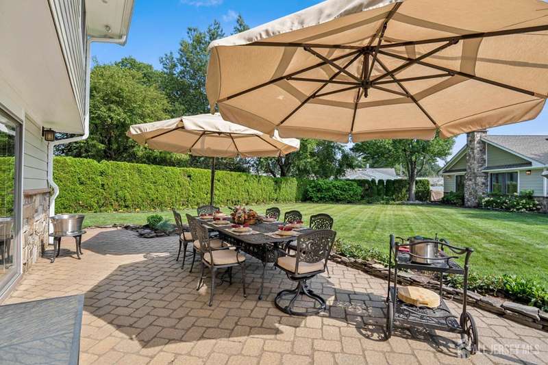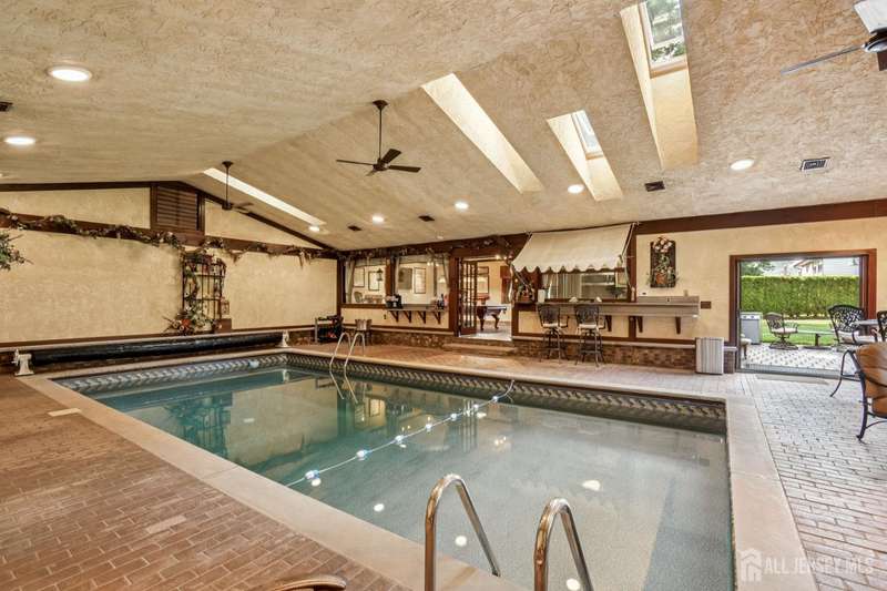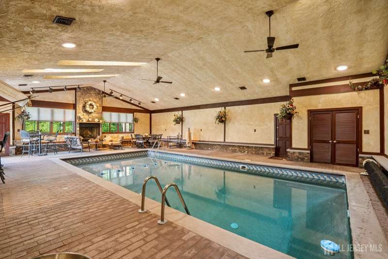 Your Private Poolside Paradise Awaits! At the heart of this property lies a one-of-a-kind all-season pool house retreat-a true destination in itself with over 2,000 sq. ft. of resort-style living. Enjoy a 16' x 32' in-ground pool, framed by elegant finishes and anchored by a floor-to-ceiling stone fireplace that brings warmth and ambiance year-round. A dedicated game room with pool table ensures endless entertainment, while the fully equipped kitchenette is perfect for cocktails, snacks, and poolside dining. A full bathroom with washer/dryer and large soundproof windows make the space as practical as it is luxurious. Whether you're hosting lively gatherings, unwinding with family, or enjoying a private swim, this pool house is designed for unforgettable entertaining and total relaxation. Complementing the pool house is a beautifully maintained 4-bedroom, 3.5-bath home with custom upgrades, Corian countertops, a lower-level family room with wet bar, and a spacious primary suite. Outdoors, professional landscaping with over 300 arborvitae, underground sprinkling system, multiple patios with pavers, and accent lighting create an ideal setting for both privacy and entertainment. Close to shopping, to New Jersey Transit, and major highways. This property is more than a home-it's a lifestyle.