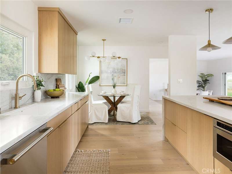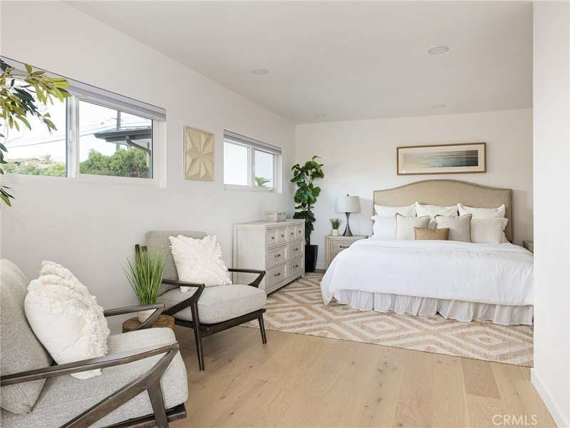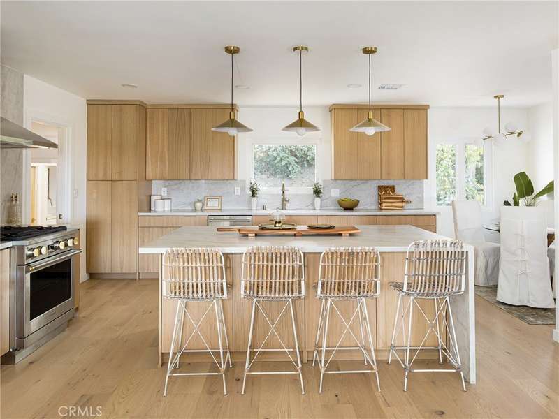 Perched above the street on a sprawling 21,500 sq. ft. lot, this fully remodeled single-level Hollywood Riviera home offers privacy, tranquility, and beautiful city lights & ocean views. A long private driveway leads to the residence, where you’ll enjoy peace of mind with no through traffic and exclusive access to the eucalyptus-lined Palos Verdes bridle trail. This 4-bedroom, 3.5-bath home has been thoughtfully reimagined with modern design and convenience. Three bedrooms feature en-suite baths, including two luxurious primary suites—each with its own stunning perspective, so you can choose which view to wake up to. The entertainer’s kitchen showcases a dramatic waterfall quartz island, custom cabinetry, and state-of-the-art Monogram appliances, all opening seamlessly to the living and dining spaces. White oak engineered floors run throughout, creating warmth and elegance at every turn. With over 2,550 sq. ft. of expansive, single-level living, the home’s interiors and outdoor spaces are designed to maximize the views and invite indoor-outdoor living while entertaining guests. Though tucked away in its own serene world, the property is just minutes from Riviera Elementary, Rocketship Park, and the boutiques and dining of Riviera Village. Come experience the rare blend of seclusion, sophistication, and sweeping views that make this one-of-a-kind Hollywood Riviera property so special.