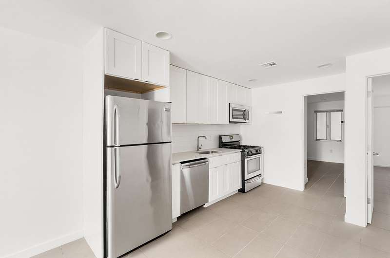 This recently renovated 2-bedroom apartment is located on tree-lined Harman Street. Upon entry, there is a functional foyer which opens up into the living room. The living and dining space opens up to a renovated kitchen and is equipped with full-sized stainless steel appliances and white cabinets.