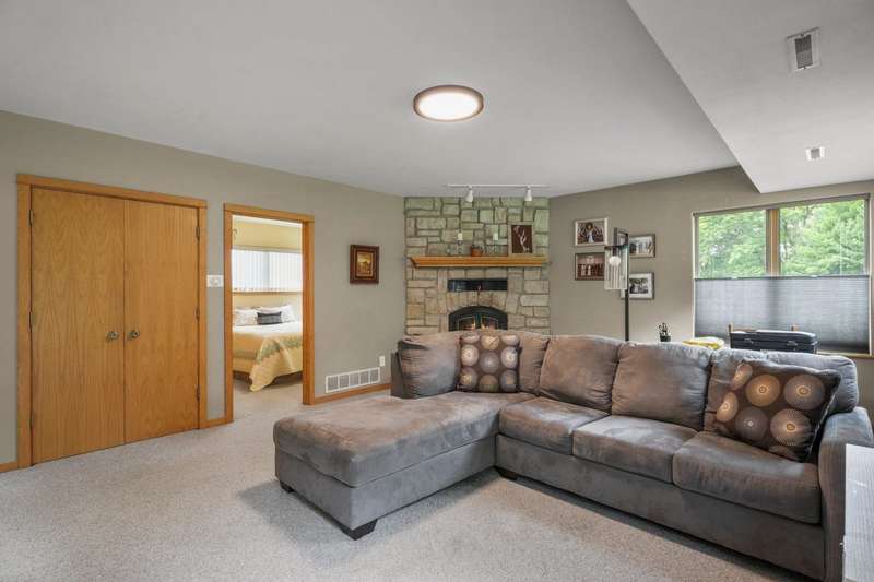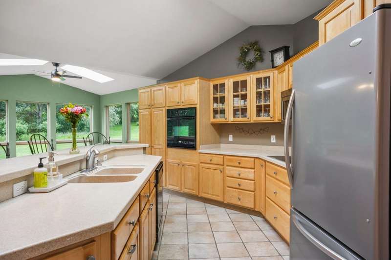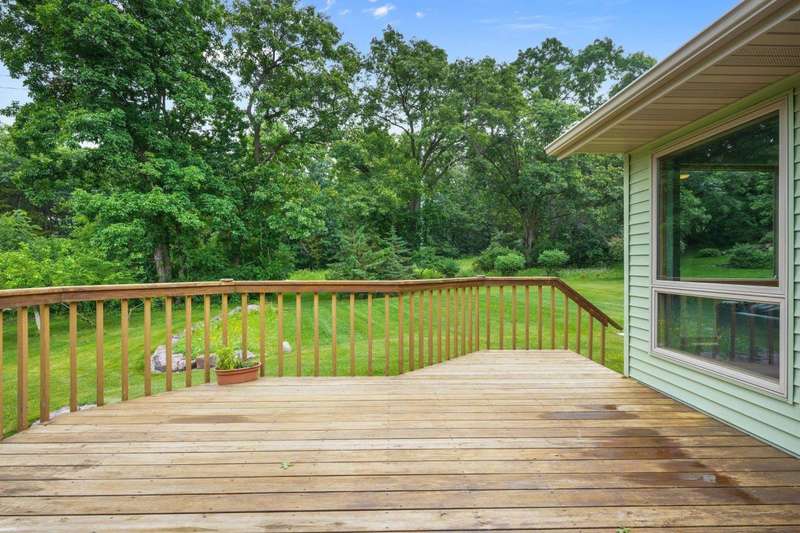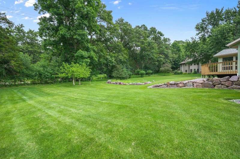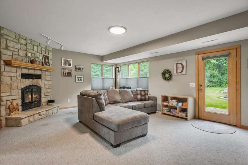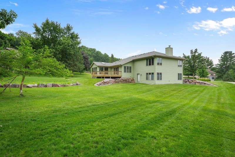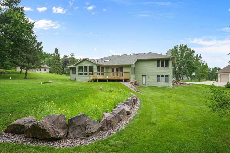 Offer w/Bump. Welcome to this beautifully custom-built home! The open & airy main floor features a spacious primary w/2 closets, serene backyard views, & an ensuite bath. The kitchen is the heart of the home, offering an oversized bkft bar, abundant storage, & a seamless flow into the sunroom, living & dining areas. You'll love the thoughtful split-bdrm layout, generous closet space in each room, & natural light that fills every room. The walkout LL expands your living space w/a cozy family room w/FP, bedroom & bath?perfect for guests or growing families. Enjoy outdoor living on the lg deck overlooking the impressive .8-acre lot. Laundry room is conveniently located on the main floor, the fantastic drop zone/mudroom off the 3-car garage keeps everything tidy & organized.