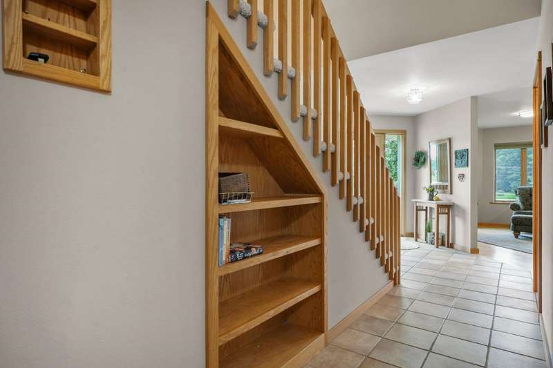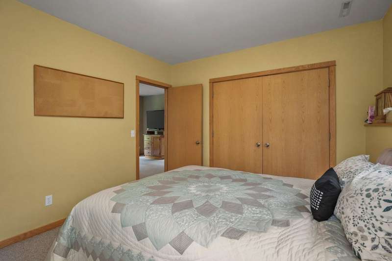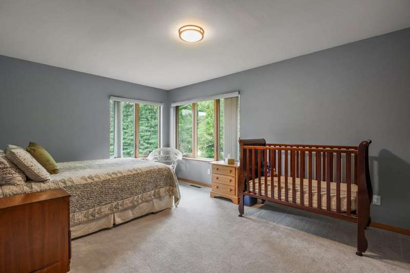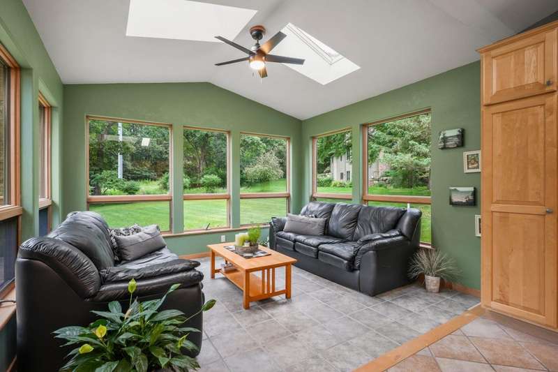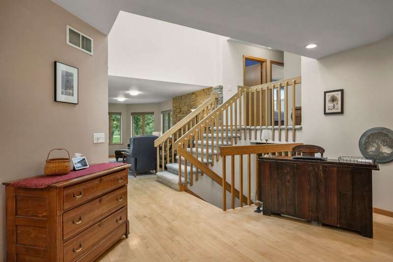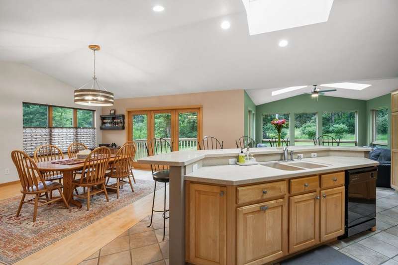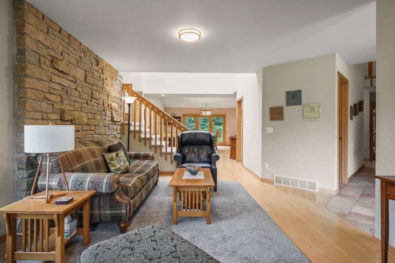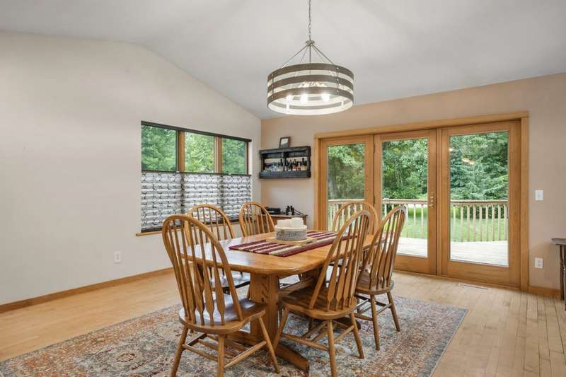 Offer w/Bump. Welcome to this beautifully custom-built home! The open & airy main floor features a spacious primary w/2 closets, serene backyard views, & an ensuite bath. The kitchen is the heart of the home, offering an oversized bkft bar, abundant storage, & a seamless flow into the sunroom, living & dining areas. You'll love the thoughtful split-bdrm layout, generous closet space in each room, & natural light that fills every room. The walkout LL expands your living space w/a cozy family room w/FP, bedroom & bath?perfect for guests or growing families. Enjoy outdoor living on the lg deck overlooking the impressive .8-acre lot. Laundry room is conveniently located on the main floor, the fantastic drop zone/mudroom off the 3-car garage keeps everything tidy & organized.