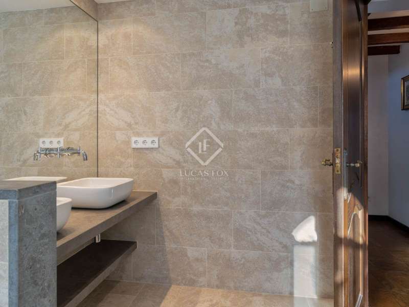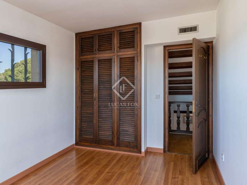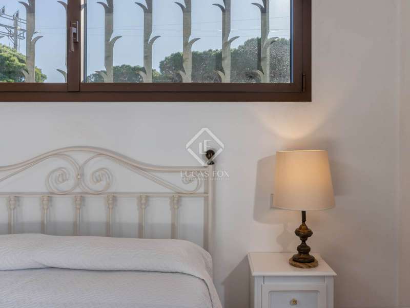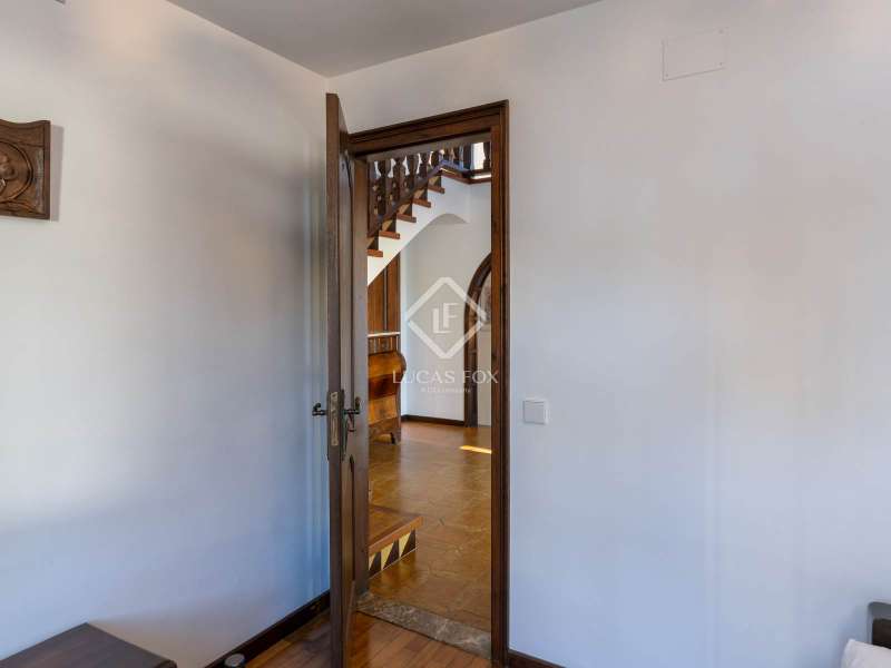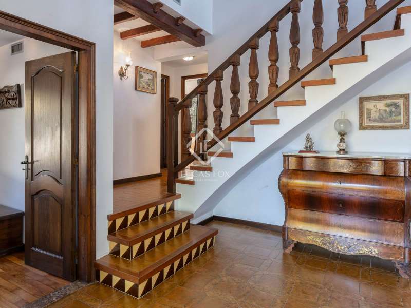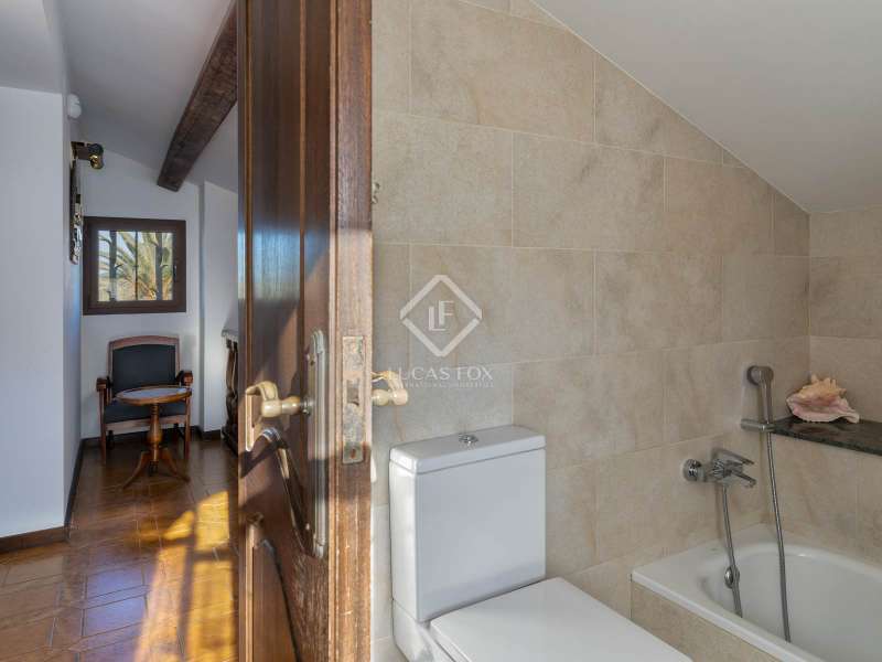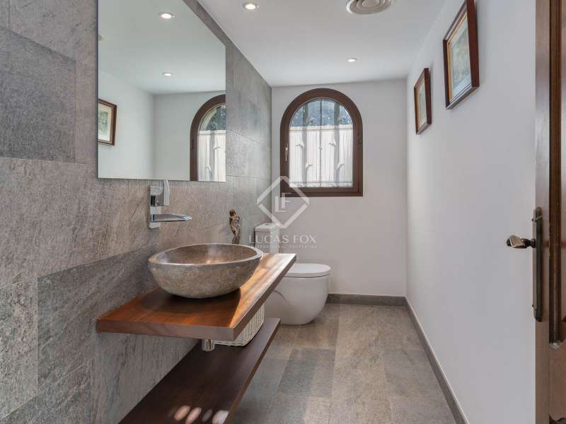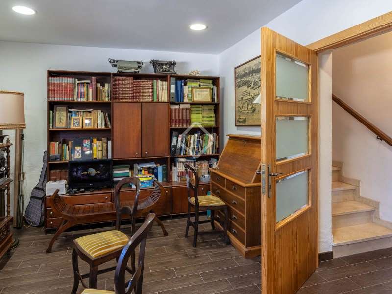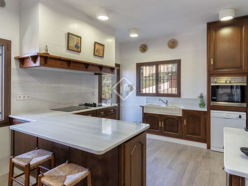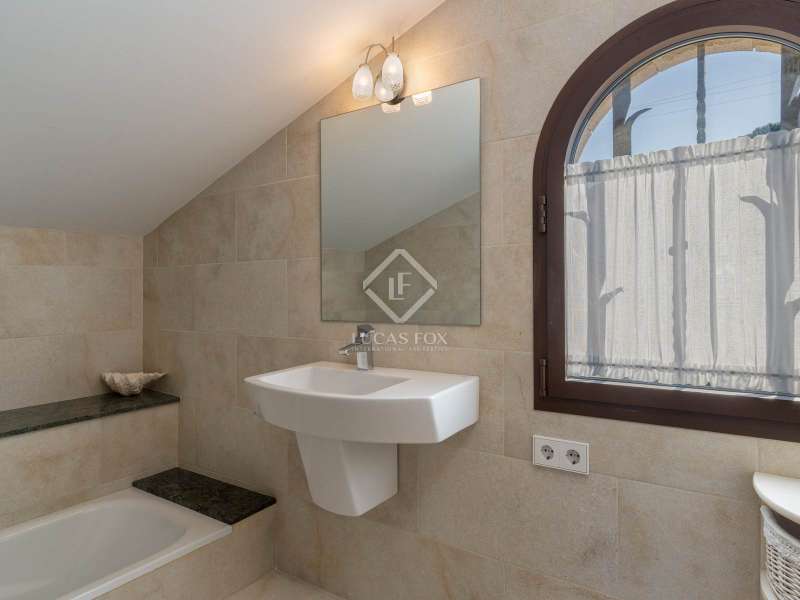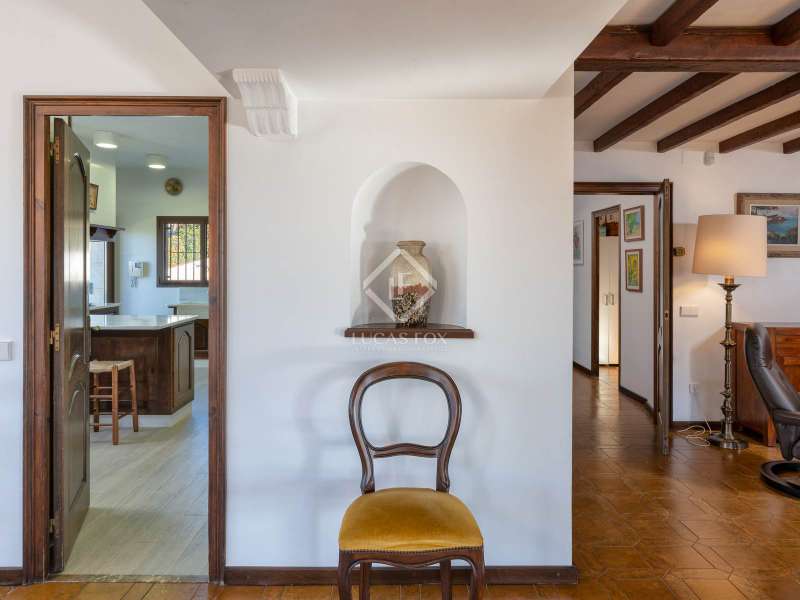 Lucas Fox presents Villa Mónica, a 359 m² house built on a 1,461 m² plot for sale located between Sant Feliu and S'Agaró, 5 minutes from Sant Pol beach. The property has a rustic style with its wooden beams and a modern touch with its large double-glazed windows and renovated bathrooms. The property is spread over three floors. We enter through the main door, and we find a large entrance hall with an arch. On this floor, there is a guest bathroom, a laundry room room, a single bedroom and a large kitchen with its marble countertop. The kitchen has plenty of storage space and is equipped with all appliances such as an oven, microwave, induction hobs and Neff gas hob and dishwasher. In addition, it has a double stone sink. The living-dining room is very spacious and elegant and has with wooden beams, a large fireplace and large windows by Technal to enjoy wonderful views of the sea and the mountains. It offers access to a terrace with its stone barbecue, perfect for summer dinners. From the living room we access another terrace with its pergola and views. We go up to the upper floor , where we access a double bedroom , a single bedroom and a double bathroom with its Italian shower. We continue up the stairs and access a single bedroom , a double bedroom and a full bathroom . From the rooms From the upper floor , we have access to a terrace with sea views. We go down to the lower floor by stairs from the kitchen. Here, there is a double bedroom or study, a shower room, a storage room, a wine cellar and a garage for three cars. The property is distinguished by its rustic style and high-quality finishes, such as natural wood floors and wood-coloured porcelain floors. The house has a gas central heating system, an alarm system and the bedrooms include built-in wardrobes. The bathrooms have been renovated and have Roca brand equipment. The large garden benefits from automatic irrigation and lighting system and has some majestic pine trees for shade in summer, some lemon trees and an olive tree. This property has a unique location overlooking the bay of Sant Feliu de Guíxols, an emblematic town on the Costa Brava, known for its markets, fine dining restaurants, shops, monastery and beach. Please do not hesitate to contact us to visit this beautiful property or request more information.