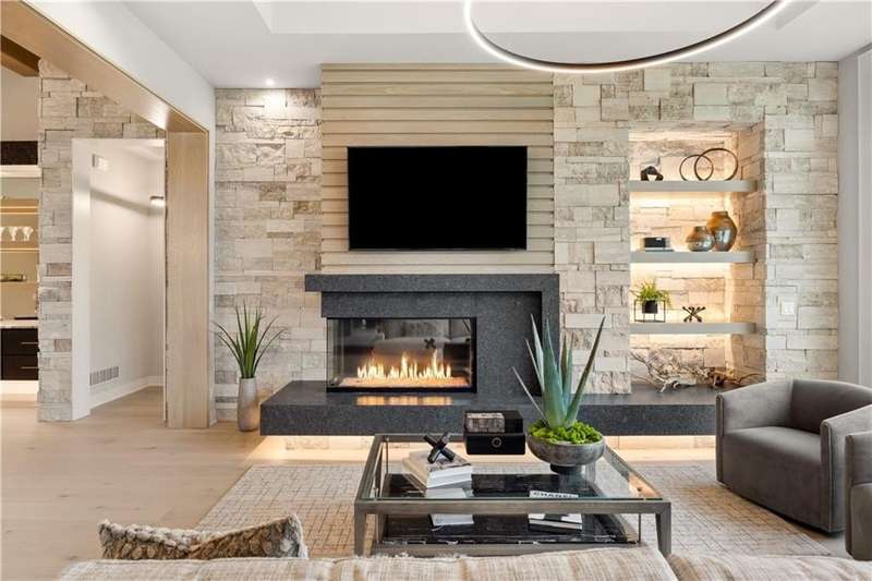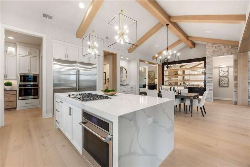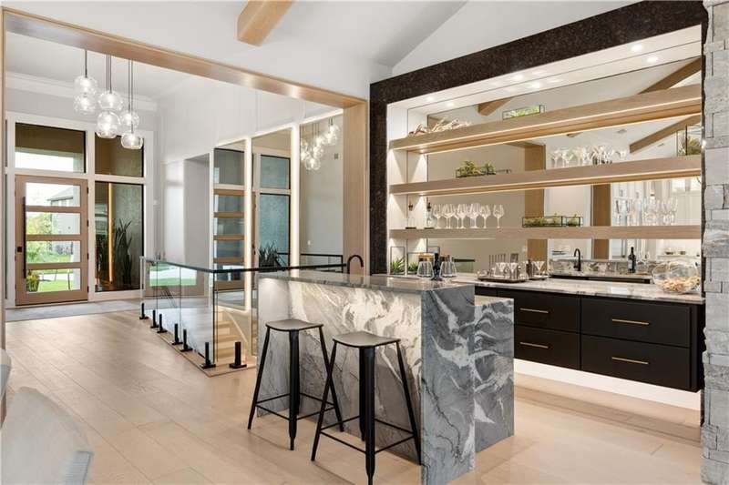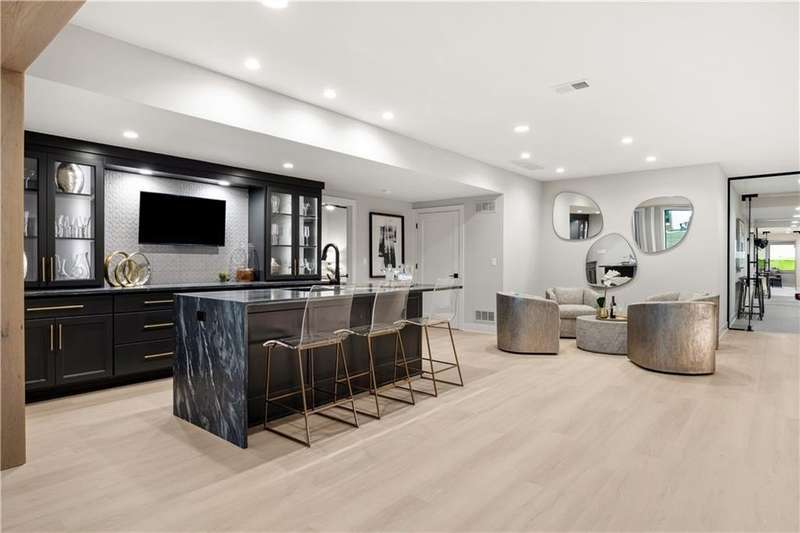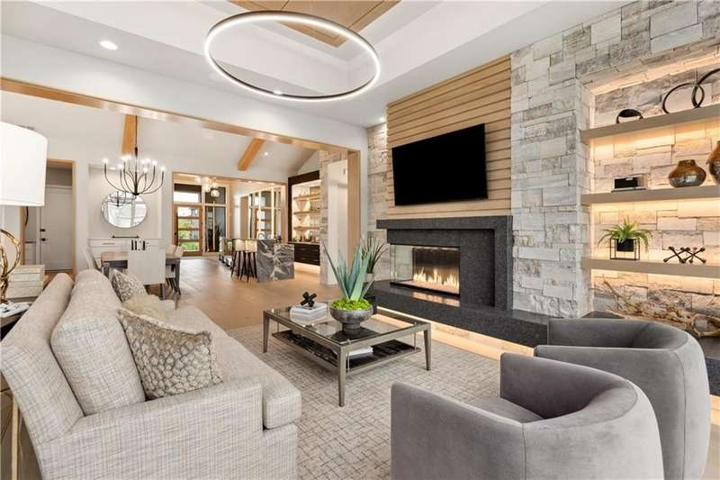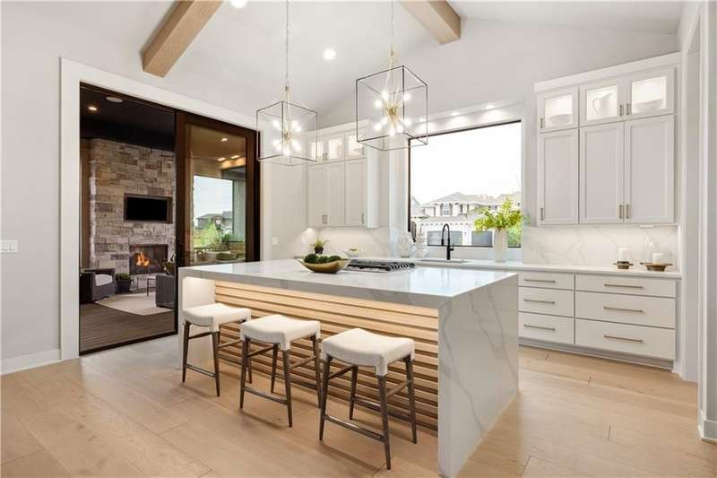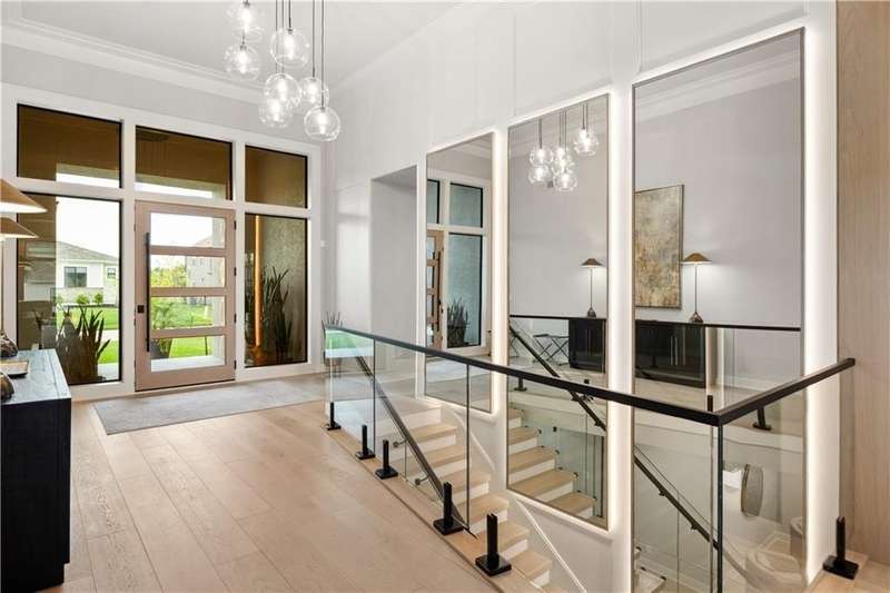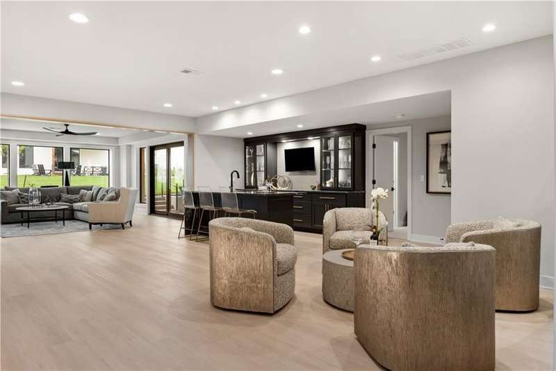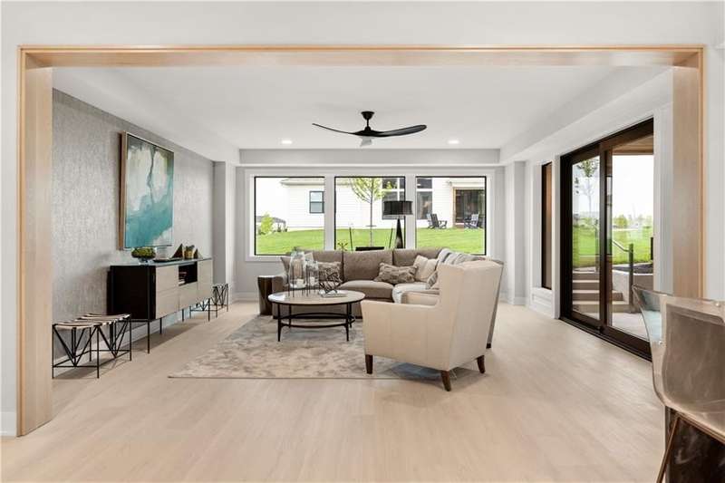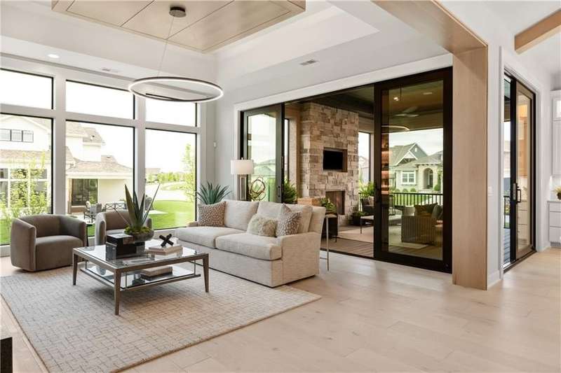 MODEL HOME FOR SALE! The sought after Willis Custom Homes Clydesdale REVERSE on lot 49 with a split 4 car garage and rare circle driveway is ready for move in! This perfect corner walkout lot features high end finishes and plenty upgraded features in a spacious main floor master suite REVERSE floor plan with dramatic high ceilings and over 5000 square feet of finished space. This unique plan features an upstairs bar as you enter, spacious kitchen with large island, prep style kitchen pantry. New modern fireplace feature wall and plenty of windows for natural light. There is a full finished basement with luxury vinyl tile flooring, large recreational room with wet bar and three bedrooms/fitness/craft rooms in the lower level. Enjoy two outdoor spaces with a screened in lanai and grill deck on the main level and a lower level walkout covered patio. This beautiful brand new home is located in Century Farms, an upscale new home community located in South Overland Park. Close to 159th NEW shopping center and easy access to Highway 69 with new 167th street on ramp. BLUE VALLEY SCHOOLS. Come join the fun in Century Farms with a large resort style pool with slide, farmhouse style club house for parties and neighborhood events, two pickleball courts, fitness room, reading loft, firepit, kids play area, wild flower walkways, sports field and community garden. This MODEL HOME is NOW FOR SALE!