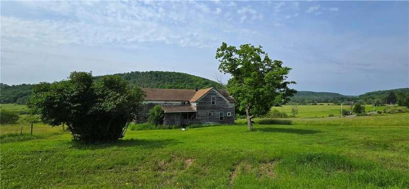 Nestled in the heart of Steuben County, this expansive 150-acre farm offers breathtaking views and a peaceful rural lifestyle. With a diverse landscape featuring 52 acres of fertile tillable land, 17 acres of rolling pasture, 23 acres of woodland, and an additional 48 acres of residential space, this property provides ample space for farming, livestock, and outdoor recreation.A newly installed fencing system encircles the land, ensuring security and ease of livestock management. A large barn stands ready for housing horses and cows, adding to the property's agricultural appeal. The farm was previously used for cattle but would be a perfect home for horses, cows, pigs, chickens, and goats, making it ideal for those looking to dive into farming or expand an existing operation.Wildlife enthusiasts will appreciate the abundance of deer, turkey, and even the occasional bear roaming the property. A scenic dirt road wraps around the land, offering convenient access and stunning views in every direction.The home, being sold as-is, has been gutted down to the studs, presenting a blank canvas for renovation and customization to fit your vision. Whether you're seeking a thriving farmstead, a private retreat, or an investment opportunity, this property is a rare find in a beautiful countryside setting.Two parcels are included: 377.00-01-011.000 & 360.00-01-019.100