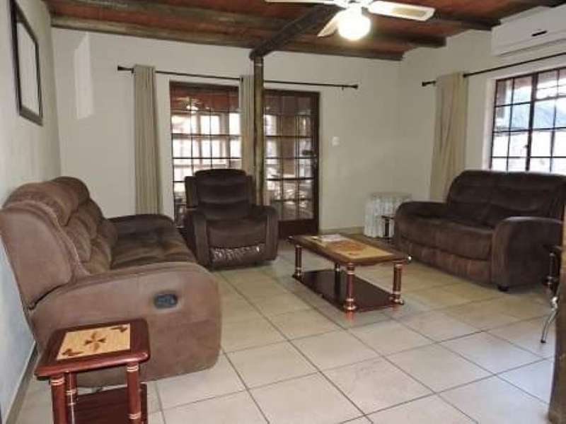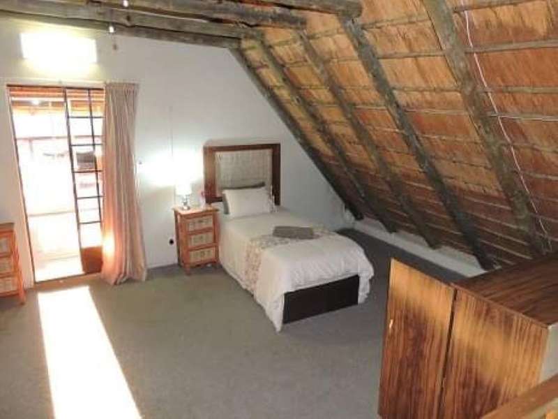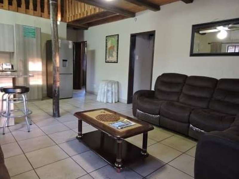 2 Bedroom house with large loft. Located only 350 meters from the Crocodile river. The house consist of 2 bedrooms, 1 bathroom, open plan living dining and kitchen area. The living area leads out to a enclosed patio from where the stairs go up to the large loft area which can be used for extra sleeping space/games room etc. From the loft you can go out onto a spacious deck where you can view the sunset and listen to the sounds coming from the river. On the outside is a Lapa with build in braai and a double shade port. At the rear of the house is a store room and also 2 JoJo tanks. The house is also service with fibre internet. The thatch roof has been re done 2 months ago. Give us a call to arrange a viewing