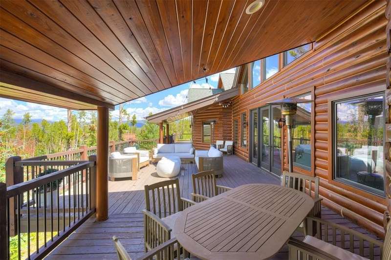 Spectacular Colorado Log Retreat with Panoramic Mountain & Lake Views Perched above Breckenridge with sweeping views of the Ten Mile Range, Buffalo Mountain and Lake Dillon, this extraordinary 6,500 square foot Colorado log home blends rustic elegance with modern luxury. Designed for grand living and entertaining, the home features expansive multi-living areas and spacious bedrooms—all with en-suite, custom-designed baths. At the heart of the living room is an iconic fireplace, creating a dramatic focal point beneath soaring ceilings. The chef’s kitchen is a true showpiece, boasting a massive live-edge island, Sub-Zero and Wolf appliances and high-end finishes throughout. An elevator adds convenience, while wraparound outdoor living spaces offer sun-soaked decks and a private hot tub to take in the alpine views. Ideally located just minutes from world-class skiing, dining, hiking, biking, fishing, and boating, this home delivers a one-of-a-kind mountain lifestyle with top-tier amenities, stunning craftsmanship and unforgettable surroundings.